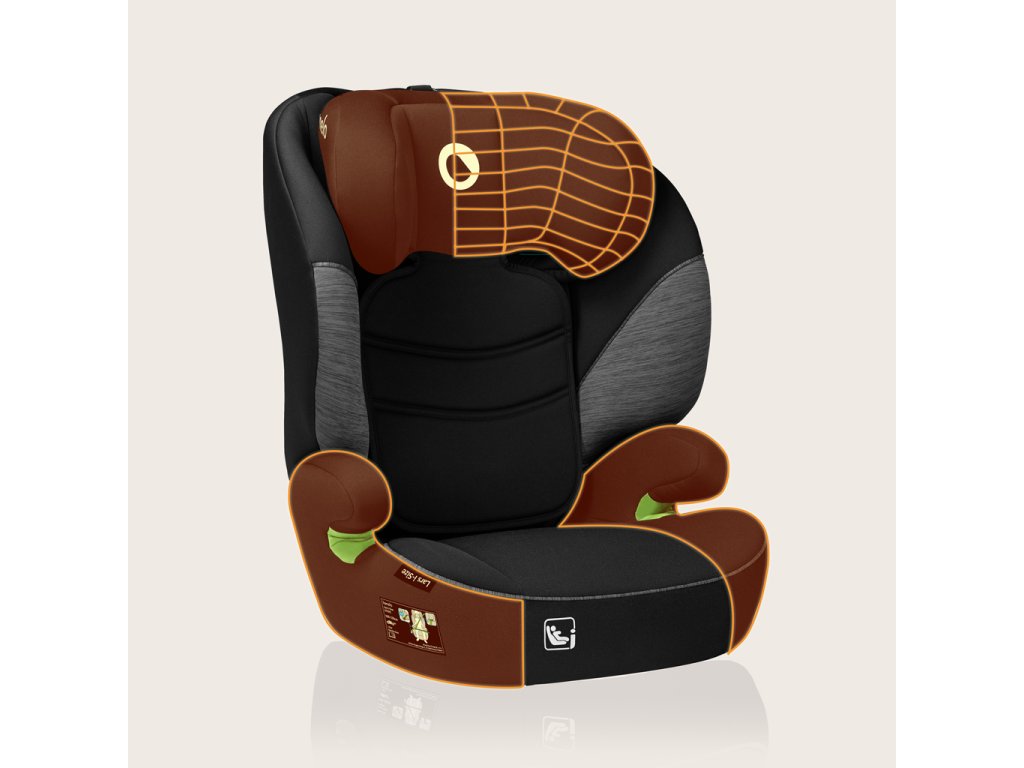 Lars i-Size je univerzálna autosedačka v súlade s prísnou normou R129. Vďaka tomu spĺňa najvyššie bezpečnostné štandardy. Predstavený model je určený na montáž FWF, teda v smere jazdy. Sedačka sa upevňuje pomocou trojbodových bezpečnostných pásov, vďaka čomu je vhodná do každého automobilu. Lars i-Size Black Grey je určená pre výškovú skupinu 100-150 cm. Široké sedadlo potiahnuté EPE penou, ergonomické podrúčky a nastavenie opierky hlavy do 10 polôh zaručujú, že autosedačka je nielen bezpečná, ale aj pohodlná. Opierka hlavy je navyše vystužená penou Memory Foam, ktorá chráni najcitlivejšie miesta - hlavu a krčnú chrbticu.