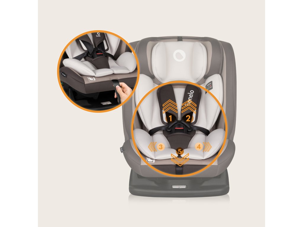 Lionelo Aart i-Size je autosedačka, ktorá spĺňa prísnu homologáciu R129. Je určená pre deti vo výškovej skupine 40-150 cm a má možnosť montáže ako po smere, tak proti smeru jazdy. Upevnenie sa vykonáva pomocou trojbodových bezpečnostných pásov, takže sedačka vyhovuje akémukoľvek typu automobilu. Náš produkt je jedinečný vďaka priestornej opierke hlavy, ktorá je vystužená penou typu Memory Foam. Naproti tomu vysoká pevnosť plášťa je zaručená sklenenými vláknami. Vďaka trinásťstupňovému nastaveniu opierky hlavy a mäkkej redukčnej a bedrovej vložke sedačka rastie s dieťaťom a prispôsobuje sa jeho meniacim sa potrebám.