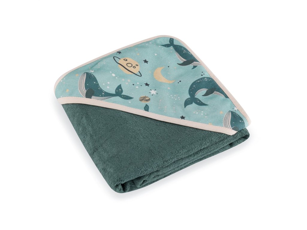 PETITE&MARS Osuška bambusová s kapucňou Loulou Whale Song 100 x 100 cm