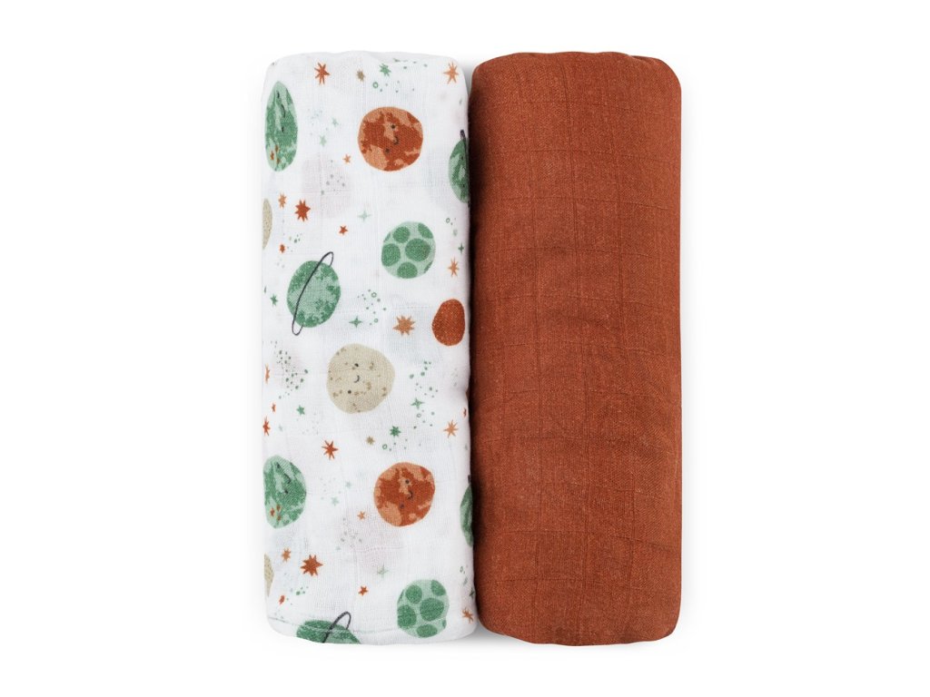 PETITE&MARS Prikrývka bambusová mušelínová 2ks Misty Celestial Planets 120 x 120 cm