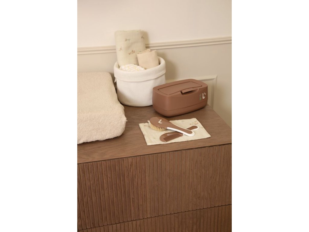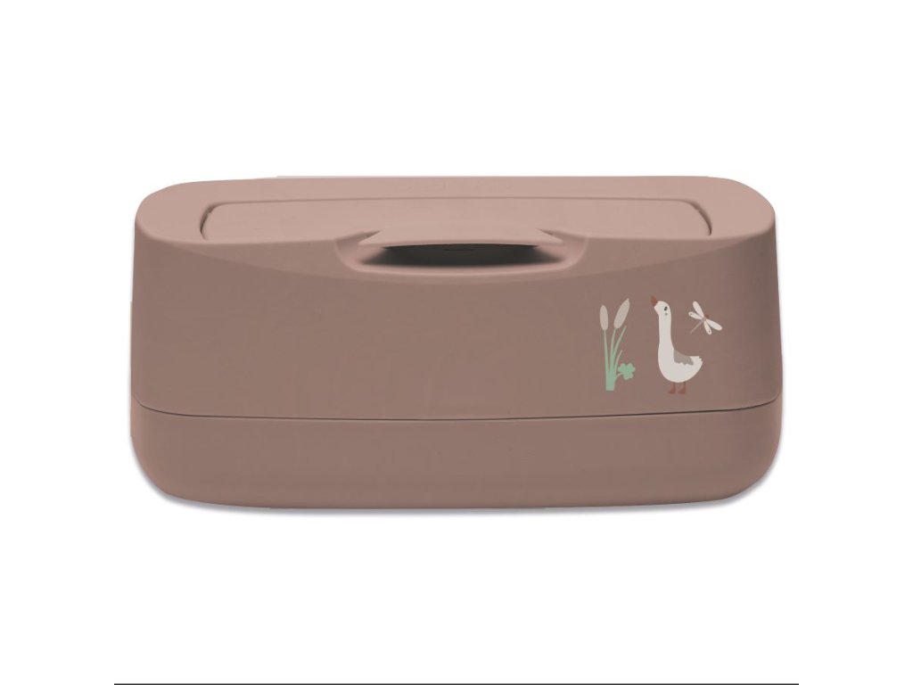 Univerzálny box na vlhčené obrúsky v modernom dizajne s ochranou proti vyschnutiu. Krásny doplnok na prebaľovaciu komodu. Je ľahko uzatvárateľný, aby sa predišlo vysychaniu obrúskov. Box je možné otvoriť jednou rukou. Špeciálne otváranie sa ďalej postará, že ďalší obrúsok budete môcť bez námahy vytiahnuť von a ihneď použiť.