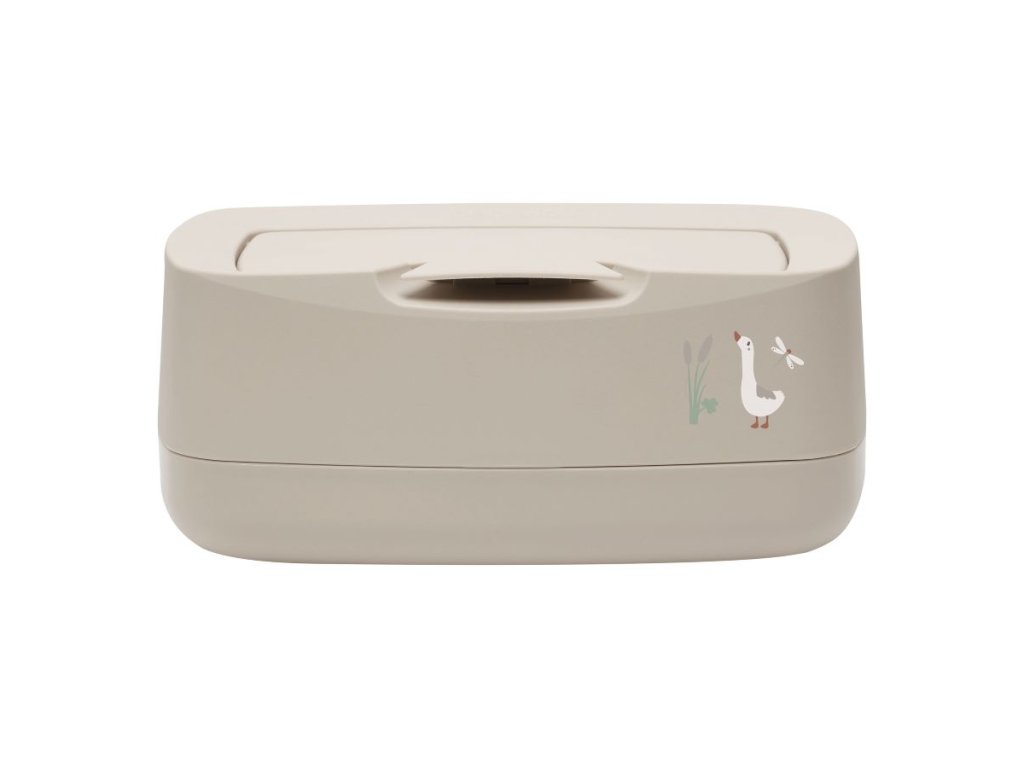 Univerzálny box na vlhčené obrúsky v modernom dizajne s ochranou proti vyschnutiu. Krásny doplnok na prebaľovaciu komodu. Je ľahko uzatvárateľný, aby sa predišlo vysychaniu obrúskov. Box je možné otvoriť jednou rukou. Špeciálne otváranie sa ďalej postará, že ďalší obrúsok budete môcť bez námahy vytiahnuť von a ihneď použiť.
