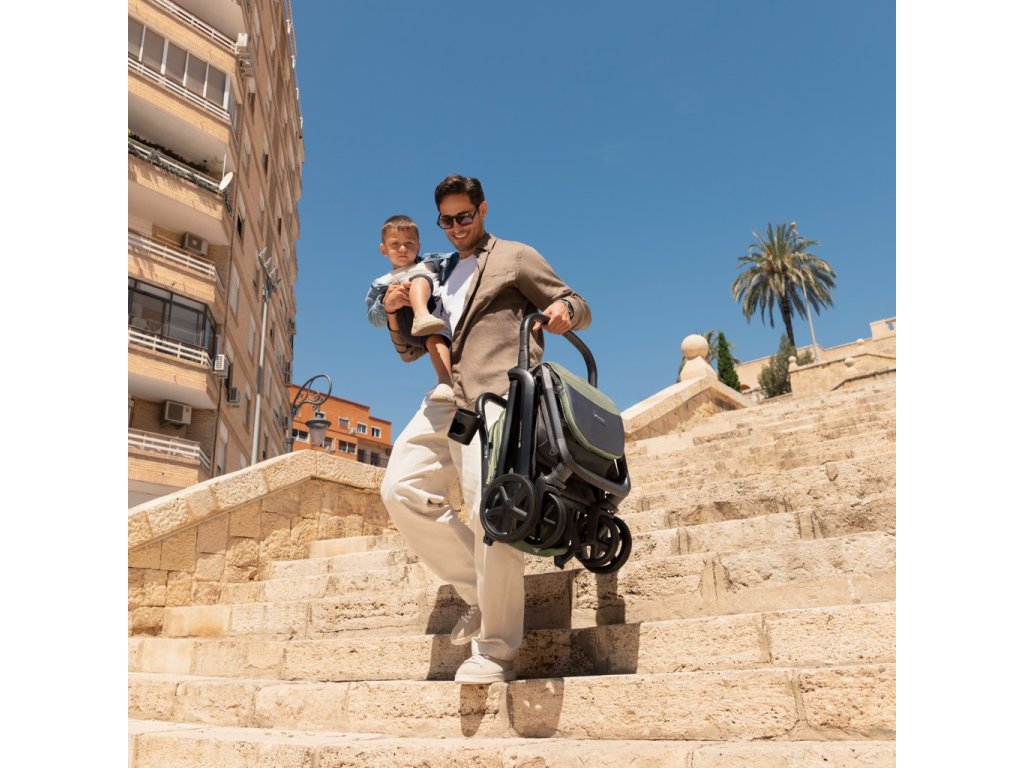 Nový rám, moderné farebné varianty a použitie priedušnej sieťoviny v čalúnení zodpovedajú súčasným potrebám aktívnych rodín, ktoré si zakladajú na dizajne. Kočík ponúka funkcie zvyšujúce pohodlie a bezpečnosť – od magnetickej pracky na páse, cez vodeodolnú striešku s UPF50+ filtrom, až po opierku na nohy z materiálu easyclean. Je to model, ktorý podporuje rodičov na každom kroku.