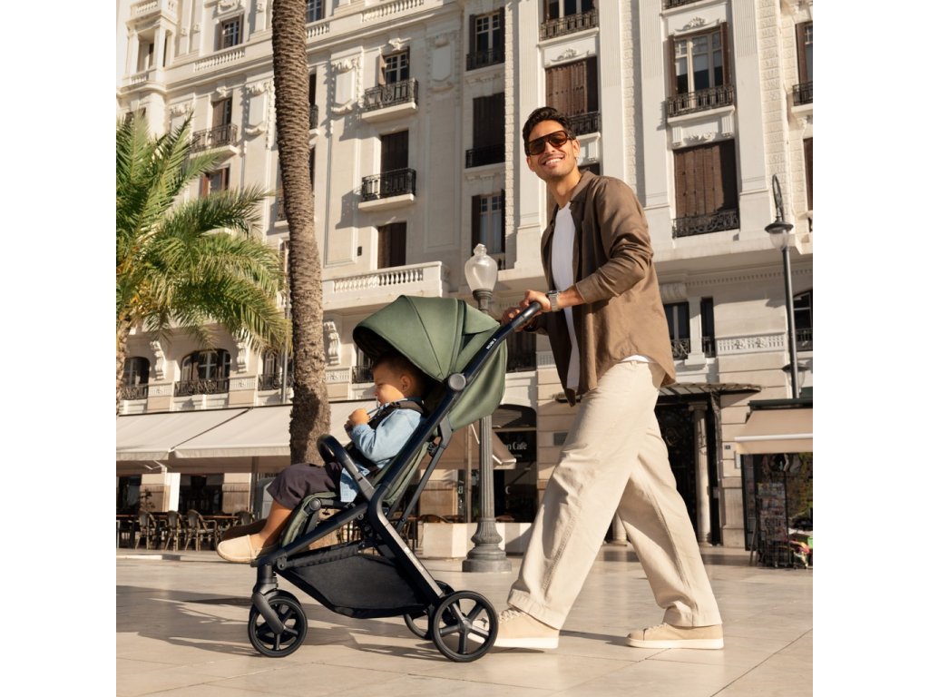 Nový rám, moderné farebné varianty a použitie priedušnej sieťoviny v čalúnení zodpovedajú súčasným potrebám aktívnych rodín, ktoré si zakladajú na dizajne. Kočík ponúka funkcie zvyšujúce pohodlie a bezpečnosť – od magnetickej pracky na páse, cez vodeodolnú striešku s UPF50+ filtrom, až po opierku na nohy z materiálu easyclean. Je to model, ktorý podporuje rodičov na každom kroku.