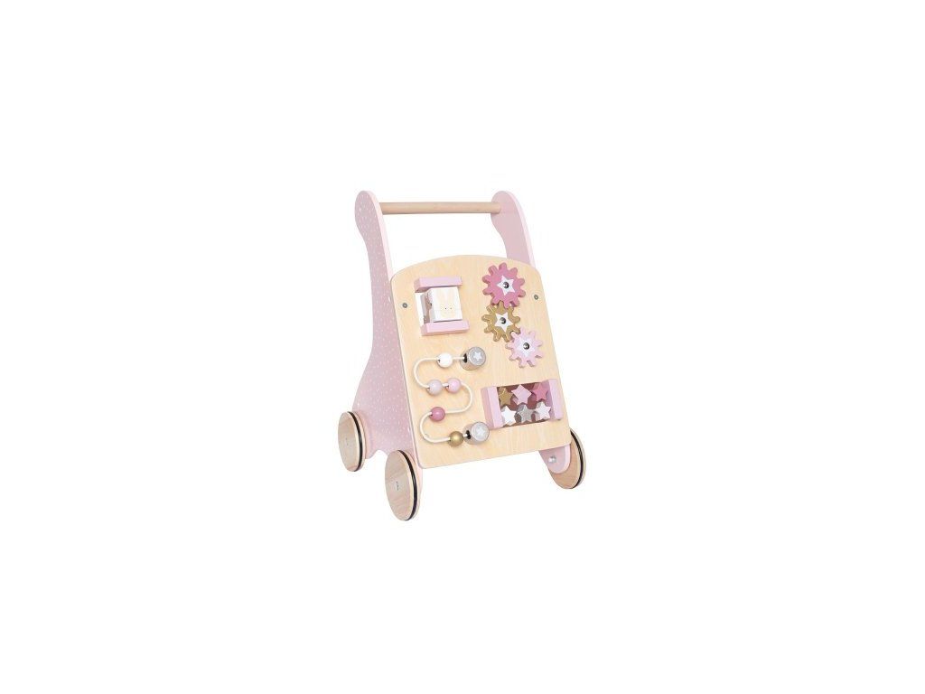 Ideální pomocník pro první krůčky dítěte. Stabilní a pevná konstrukce poskytuje bezpečnou oporu při učení chůze. Multifunkční provedení s hracími prvky pro dlouhodobé zabavení dítěte. Podporuje rozvoj jemné i hrubé motoriky, koordinace a rovnováhy. Integrovaný úložný prostor pro oblíbené hračky dítěte.