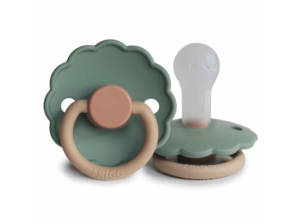 Cumlík je vyrobený zo silikónu medicínskeho stupňa s novým povrchom SilkySoft™, ktorý predstavuje najvyššiu kvalitu silikónu s ešte mäkším povrchom ako predtým, pre prirodzenejšie satie a ešte bezpečnejšiu voľbu pre detské podnebie a ďasná. Každý cumlík je strojovo testovaný na závadnosť, aby sa k našim najdôležitejším zákazníkom dostal vždy perfektný produkt. Tvar štítu je zakrivený jemne smerom von, aby sa zabránilo podráždeniu pokožky. Pre väčšiu bezpečnosť sú v štíte prítomné vzduchové otvory. Nový Click-lock™ systém odlišuje cumlík FRIGG od akéhokoľvek iného cumlíku na trhu. Vďaka novému 4-krokovému procesu spájania jednotlivých častí cumlíka je možné cumlík zostaviť jednoduchým kliknutím, bez použitia akejkoľvek sily. Vďaka tomu je cumlík ešte odolnejší ako predtým. FRIGG je 100% dizajnovaný a vyrobený v Dánsku ako jediná značka cumlíkov na svete! Každý cumlík je zároveň vyrobený na princípe zero-waste, čím sa minimalizuje odpad materiálu vďaka možnosti recyklácie. Cumlíky sú vyrábané s maximálny ohľadom na životné prostredie, a zároveň s dôrazom na uspokojenie potrieb najmenších detí. FRIGG kladie dôraz aj na bezpečnosť – cumlíky sú vyrábané bez BPA, PVC a ftalátov, každý cumlík podstupuje stretch a vacuum test pred uvedením do predaja a sú vyrábané podľa najprísnejšej normy EN1400-A2. Spoznajte svet značky FRIGG, inšpirovaný bohyňou zeme, vzduchu a plodnosti podľa severskej mytológie a nechajte sa zlákať dokonalosťou tvarov a farieb. Cumlík FRIGG Daisy s vrúbkovanými okrajmi, ktoré napodobňujú lupene kvetov, je základom elegantného dizajnu. Kvetinové a moderné detaily upútajú pozornosť každej štýlovej mamičky. Vďaka tomu sa FRIGG perfektne hodí pre dnešné matky, ktoré pri výbere základných potrieb pre bábätko prikladajú veľký význam klasickému dizajnu s modernými prvkami. Vlastnosti: