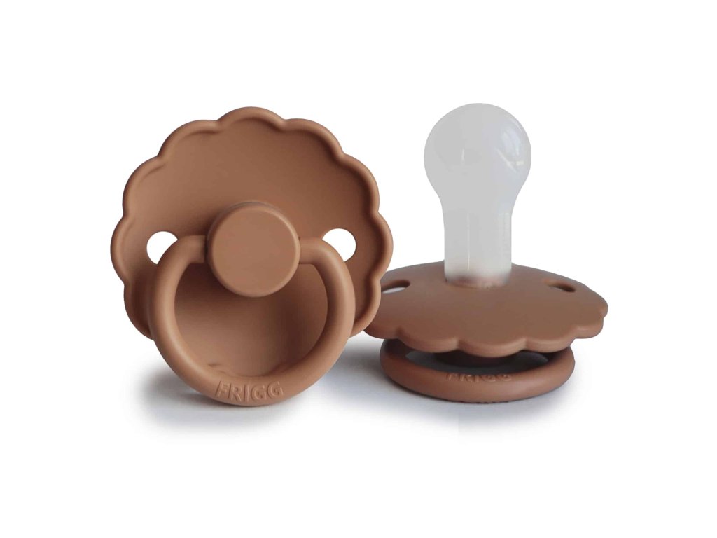 Cumlík je vyrobený zo silikónu medicínskeho stupňa s novým povrchom SilkySoft™, ktorý predstavuje najvyššiu kvalitu silikónu s ešte mäkším povrchom ako predtým, pre prirodzenejšie satie a ešte bezpečnejšiu voľbu pre detské podnebie a ďasná. Každý cumlík je strojovo testovaný na závadnosť, aby sa k našim najdôležitejším zákazníkom dostal vždy perfektný produkt. Tvar štítu je zakrivený jemne smerom von, aby sa zabránilo podráždeniu pokožky. Pre väčšiu bezpečnosť sú v štíte prítomné vzduchové otvory. Nový Click-lock™ systém odlišuje cumlík FRIGG od akéhokoľvek iného cumlíku na trhu. Vďaka novému 4-krokovému procesu spájania jednotlivých častí cumlíka je možné cumlík zostaviť jednoduchým kliknutím, bez použitia akejkoľvek sily. Vďaka tomu je cumlík ešte odolnejší ako predtým. FRIGG je 100% dizajnovaný a vyrobený v Dánsku ako jediná značka cumlíkov na svete! Každý cumlík je zároveň vyrobený na princípe zero-waste, čím sa minimalizuje odpad materiálu vďaka možnosti recyklácie. Cumlíky sú vyrábané s maximálny ohľadom na životné prostredie, a zároveň s dôrazom na uspokojenie potrieb najmenších detí. FRIGG kladie dôraz aj na bezpečnosť - cumlíky sú vyrábané bez BPA, PVC a ftalátov, každý cumlík podstupuje stretch a vacuum test pred uvedením do predaja a sú vyrábané podľa najprísnejšej normy EN1400-A2. Spoznajte svet značky FRIGG, inšpirovaný bohyňou zeme, vzduchu a plodnosti podľa severskej mytológie a nechajte sa zlákať dokonalosťou tvarov a farieb. Cumlík FRIGG Daisy s vrúbkovanými okrajmi, ktoré napodobňujú lupene kvetov, je základom elegantného dizajnu. Kvetinové a moderné detaily upútajú pozornosť každej štýlovej mamičky. Vďaka tomu sa FRIGG perfektne hodí pre dnešné matky, ktoré pri výbere základných potrieb pre bábätko prikladajú veľký význam klasickému dizajnu s modernými prvkami. Vlastnosti: