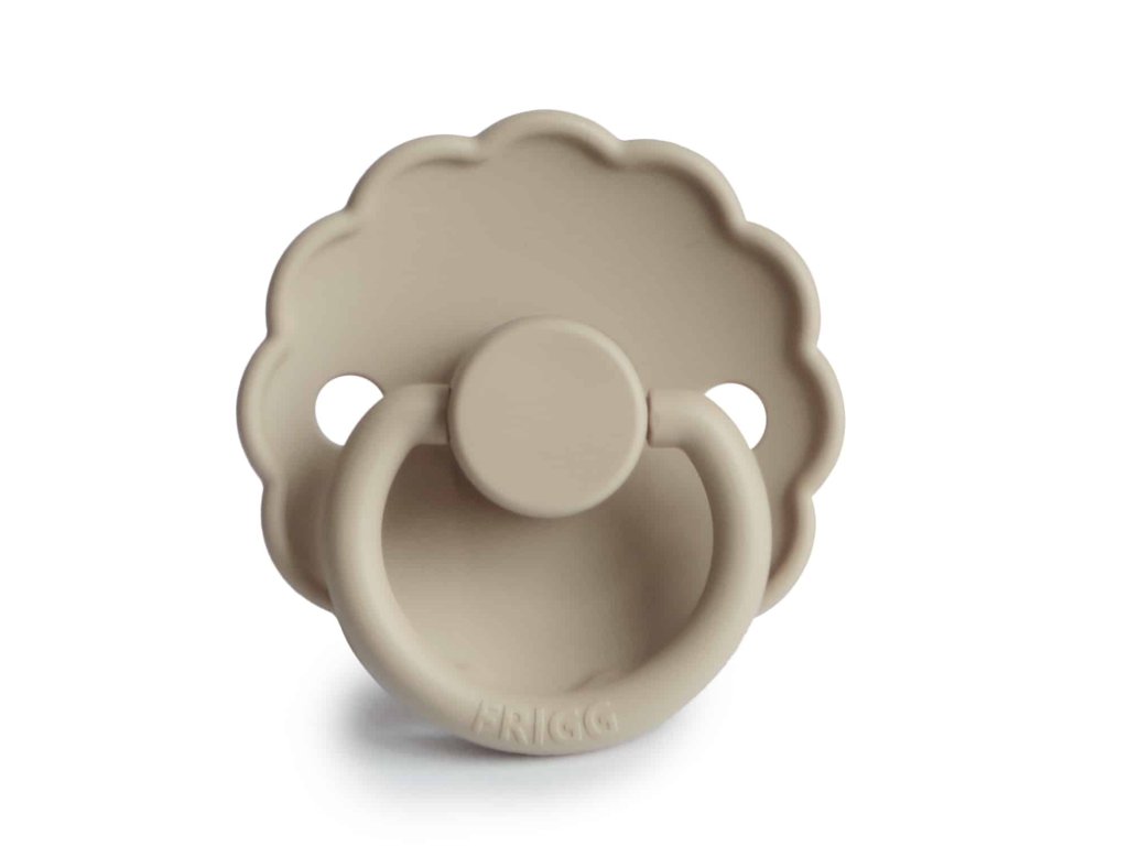 Cumlík je vyrobený zo silikónu medicínskeho stupňa s novým povrchom SilkySoft™, ktorý predstavuje najvyššiu kvalitu silikónu s ešte mäkším povrchom ako predtým, pre prirodzenejšie satie a ešte bezpečnejšiu voľbu pre detské podnebie a ďasná. Každý cumlík je strojovo testovaný na závadnosť, aby sa k našim najdôležitejším zákazníkom dostal vždy perfektný produkt. Tvar štítu je zakrivený jemne smerom von, aby sa zabránilo podráždeniu pokožky. Pre väčšiu bezpečnosť sú v štíte prítomné vzduchové otvory. Nový Click-lock™ systém odlišuje cumlík FRIGG od akéhokoľvek iného cumlíku na trhu. Vďaka novému 4-krokovému procesu spájania jednotlivých častí cumlíka je možné cumlík zostaviť jednoduchým kliknutím, bez použitia akejkoľvek sily. Vďaka tomu je cumlík ešte odolnejší ako predtým. FRIGG je 100% dizajnovaný a vyrobený v Dánsku ako jediná značka cumlíkov na svete! Každý cumlík je zároveň vyrobený na princípe zero-waste, čím sa minimalizuje odpad materiálu vďaka možnosti recyklácie. Cumlíky sú vyrábané s maximálny ohľadom na životné prostredie, a zároveň s dôrazom na uspokojenie potrieb najmenších detí. FRIGG kladie dôraz aj na bezpečnosť - cumlíky sú vyrábané bez BPA, PVC a ftalátov, každý cumlík podstupuje stretch a vacuum test pred uvedením do predaja a sú vyrábané podľa najprísnejšej normy EN1400-A2. Spoznajte svet značky FRIGG, inšpirovaný bohyňou zeme, vzduchu a plodnosti podľa severskej mytológie a nechajte sa zlákať dokonalosťou tvarov a farieb. Cumlík FRIGG Daisy s vrúbkovanými okrajmi, ktoré napodobňujú lupene kvetov, je základom elegantného dizajnu. Kvetinové a moderné detaily upútajú pozornosť každej štýlovej mamičky. Vďaka tomu sa FRIGG perfektne hodí pre dnešné matky, ktoré pri výbere základných potrieb pre bábätko prikladajú veľký význam klasickému dizajnu s modernými prvkami. Vlastnosti:
