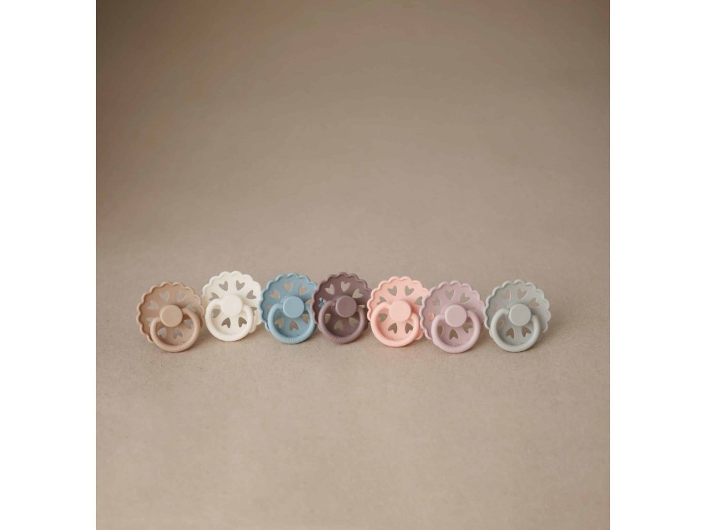 Cumlík je vyrobený zo silikónu medicínskeho stupňa s novým povrchom SilkySoft™, ktorý predstavuje najvyššiu kvalitu silikónu s ešte mäkším povrchom ako predtým, pre prirodzenejšie satie a ešte bezpečnejšiu voľbu pre detské podnebie a ďasná. Každý cumlík je strojovo testovaný na závadnosť, aby sa k našim najdôležitejším zákazníkom dostal vždy perfektný produkt. Tvar štítu je zakrivený jemne smerom von, aby sa zabránilo podráždeniu pokožky. Pre väčšiu bezpečnosť sú v štíte prítomné vzduchové otvory. Nový Click-lock™ systém odlišuje cumlík FRIGG od akéhokoľvek iného cumlíku na trhu. Vďaka novému 4-krokovému procesu spájania jednotlivých častí cumlíka je možné cumlík zostaviť jednoduchým kliknutím, bez použitia akejkoľvek sily. Vďaka tomu je cumlík ešte odolnejší ako predtým. FRIGG je 100% dizajnovaný a vyrobený v Dánsku ako jediná značka cumlíkov na svete! Každý cumlík je zároveň vyrobený na princípe zero-waste, čím sa minimalizuje odpad materiálu vďaka možnosti recyklácie. Cumlíky sú vyrábané s maximálny ohľadom na životné prostredie, a zároveň s dôrazom na uspokojenie potrieb najmenších detí. FRIGG kladie dôraz aj na bezpečnosť - cumlíky sú vyrábané bez BPA, PVC a ftalátov, každý cumlík podstupuje stretch a vacuum test pred uvedením do predaja a sú vyrábané podľa najprísnejšej normy EN1400-A2. Spoznajte svet značky FRIGG, inšpirovaný bohyňou zeme, vzduchu a plodnosti podľa severskej mytológie a nechajte sa zlákať dokonalosťou tvarov a farieb. Kolekcia cumlíkov FRIGG Fairytale je inšpirovaná umeleckou tvorbou dánskeho autora H.C. Andersena. Vrúbkované okraje a malé srdiečka vo vnútri štítu napodobňujú jeden z jeho papierových výstrižkov. Každá farba cumlíka je pomenovaná podľa jeho známych rozprávok, ktoré dodávajú cumlíkom nádych fantázie. Tento mimoriadne krásny cumlík, s moderným dizajnom a elegantnými detailmi, upúta pozornosť každej štýlovej mamičky. Vlastnosti: