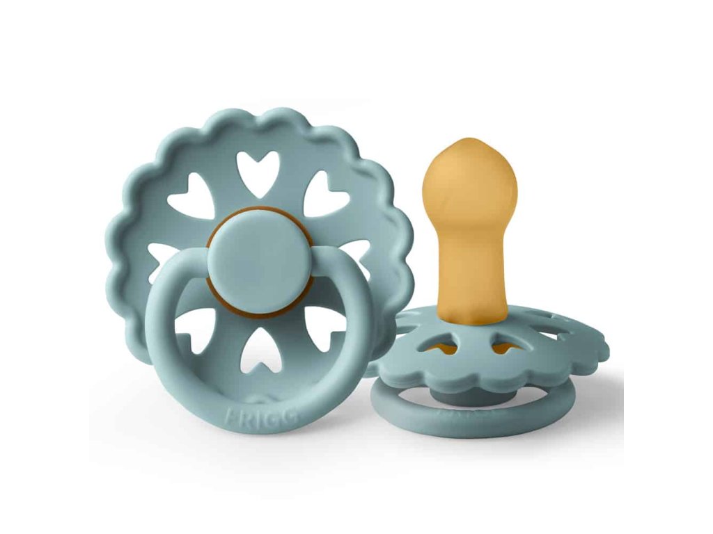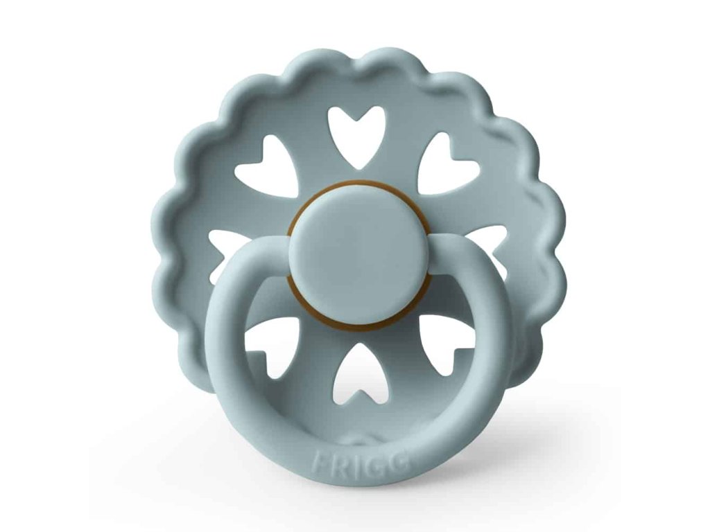 Cumlík je vyrobený z prírodného kaučuku, pričom jeho tvar je zakrivený jemne smerom von, aby sa zabránilo podráždeniu pokožky. Každý cumlík je strojovo testovaný na závadnosť, aby sa k našim najdôležitejším zákazníkom dostal vždy perfektný produkt. Tvar štítu je zakrivený jemne smerom von, aby sa zabránilo podráždeniu pokožky. Pre väčšiu bezpečnosť sú v štíte prítomné vzduchové otvory. Nový Click-lock™ systém odlišuje cumlík FRIGG od akéhokoľvek iného cumlíku na trhu. Vďaka novému 4-krokovému procesu spájania jednotlivých častí cumlíka je možné cumlík zostaviť jednoduchým kliknutím, bez použitia akejkoľvek sily. Vďaka tomu je cumlík ešte odolnejší ako predtým. FRIGG je 100% dizajnovaný a vyrobený v Dánsku ako jediná značka cumlíkov na svete! Každý cumlík je zároveň vyrobený na princípe zero-waste, čím sa minimalizuje odpad materiálu vďaka možnosti recyklácie. Cumlíky sú vyrábané s maximálny ohľadom na životné prostredie, a zároveň s dôrazom na uspokojenie potrieb najmenších detí. FRIGG kladie dôraz aj na bezpečnosť - cumlíky sú vyrábané bez BPA, PVC a ftalátov, každý cumlík podstupuje stretch a vacuum test pred uvedením do predaja a sú vyrábané podľa najprísnejšej normy EN1400-A2. Spoznajte svet značky FRIGG, inšpirovaný bohyňou zeme, vzduchu a plodnosti podľa severskej mytológie a nechajte sa zlákať dokonalosťou tvarov a farieb. Kolekcia cumlíkov FRIGG Fairytale je inšpirovaná umeleckou tvorbou dánskeho autora H.C. Andersena. Vrúbkované okraje a malé srdiečka vo vnútri štítu napodobňujú jeden z jeho papierových výstrižkov. Každá farba cumlíka je pomenovaná podľa jeho známych rozprávok, ktoré dodávajú cumlíkom nádych fantázie. Tento mimoriadne krásny cumlík, s moderným dizajnom a elegantnými detailmi, upúta pozornosť každej štýlovej mamičky. Vlastnosti: