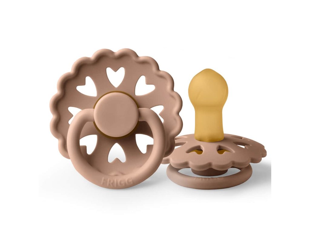 Cumlík je vyrobený z prírodného kaučuku, pričom jeho tvar je zakrivený jemne smerom von, aby sa zabránilo podráždeniu pokožky. Každý cumlík je strojovo testovaný na závadnosť, aby sa k našim najdôležitejším zákazníkom dostal vždy perfektný produkt. Tvar štítu je zakrivený jemne smerom von, aby sa zabránilo podráždeniu pokožky. Pre väčšiu bezpečnosť sú v štíte prítomné vzduchové otvory. Nový Click-lock™ systém odlišuje cumlík FRIGG od akéhokoľvek iného cumlíku na trhu. Vďaka novému 4-krokovému procesu spájania jednotlivých častí cumlíka je možné cumlík zostaviť jednoduchým kliknutím, bez použitia akejkoľvek sily. Vďaka tomu je cumlík ešte odolnejší ako predtým. FRIGG je 100% dizajnovaný a vyrobený v Dánsku ako jediná značka cumlíkov na svete! Každý cumlík je zároveň vyrobený na princípe zero-waste, čím sa minimalizuje odpad materiálu vďaka možnosti recyklácie. Cumlíky sú vyrábané s maximálny ohľadom na životné prostredie, a zároveň s dôrazom na uspokojenie potrieb najmenších detí. FRIGG kladie dôraz aj na bezpečnosť - cumlíky sú vyrábané bez BPA, PVC a ftalátov, každý cumlík podstupuje stretch a vacuum test pred uvedením do predaja a sú vyrábané podľa najprísnejšej normy EN1400-A2. Spoznajte svet značky FRIGG, inšpirovaný bohyňou zeme, vzduchu a plodnosti podľa severskej mytológie a nechajte sa zlákať dokonalosťou tvarov a farieb. Kolekcia cumlíkov FRIGG Fairytale je inšpirovaná umeleckou tvorbou dánskeho autora H.C. Andersena. Vrúbkované okraje a malé srdiečka vo vnútri štítu napodobňujú jeden z jeho papierových výstrižkov. Každá farba cumlíka je pomenovaná podľa jeho známych rozprávok, ktoré dodávajú cumlíkom nádych fantázie. Tento mimoriadne krásny cumlík, s moderným dizajnom a elegantnými detailmi, upúta pozornosť každej štýlovej mamičky. Vlastnosti: