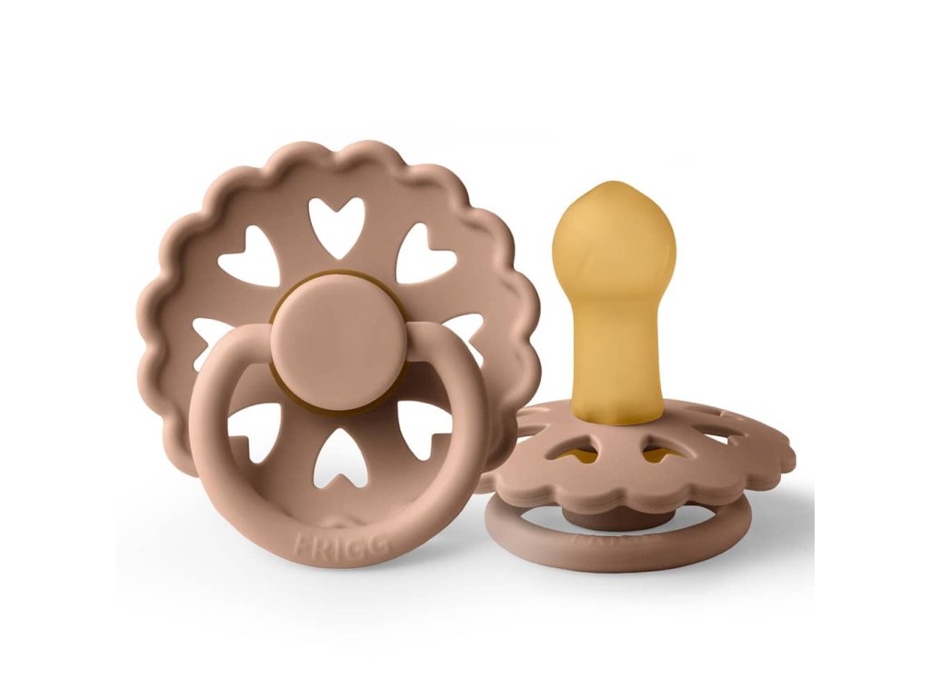 Cumlík je vyrobený z prírodného kaučuku, pričom jeho tvar je zakrivený jemne smerom von, aby sa zabránilo podráždeniu pokožky. Každý cumlík je strojovo testovaný na závadnosť, aby sa k našim najdôležitejším zákazníkom dostal vždy perfektný produkt. Tvar štítu je zakrivený jemne smerom von, aby sa zabránilo podráždeniu pokožky. Pre väčšiu bezpečnosť sú v štíte prítomné vzduchové otvory. Nový Click-lock™ systém odlišuje cumlík FRIGG od akéhokoľvek iného cumlíku na trhu. Vďaka novému 4-krokovému procesu spájania jednotlivých častí cumlíka je možné cumlík zostaviť jednoduchým kliknutím, bez použitia akejkoľvek sily. Vďaka tomu je cumlík ešte odolnejší ako predtým. FRIGG je 100% dizajnovaný a vyrobený v Dánsku ako jediná značka cumlíkov na svete! Každý cumlík je zároveň vyrobený na princípe zero-waste, čím sa minimalizuje odpad materiálu vďaka možnosti recyklácie. Cumlíky sú vyrábané s maximálny ohľadom na životné prostredie, a zároveň s dôrazom na uspokojenie potrieb najmenších detí. FRIGG kladie dôraz aj na bezpečnosť - cumlíky sú vyrábané bez BPA, PVC a ftalátov, každý cumlík podstupuje stretch a vacuum test pred uvedením do predaja a sú vyrábané podľa najprísnejšej normy EN1400-A2. Spoznajte svet značky FRIGG, inšpirovaný bohyňou zeme, vzduchu a plodnosti podľa severskej mytológie a nechajte sa zlákať dokonalosťou tvarov a farieb. Kolekcia cumlíkov FRIGG Fairytale je inšpirovaná umeleckou tvorbou dánskeho autora H.C. Andersena. Vrúbkované okraje a malé srdiečka vo vnútri štítu napodobňujú jeden z jeho papierových výstrižkov. Každá farba cumlíka je pomenovaná podľa jeho známych rozprávok, ktoré dodávajú cumlíkom nádych fantázie. Tento mimoriadne krásny cumlík, s moderným dizajnom a elegantnými detailmi, upúta pozornosť každej štýlovej mamičky. Vlastnosti: