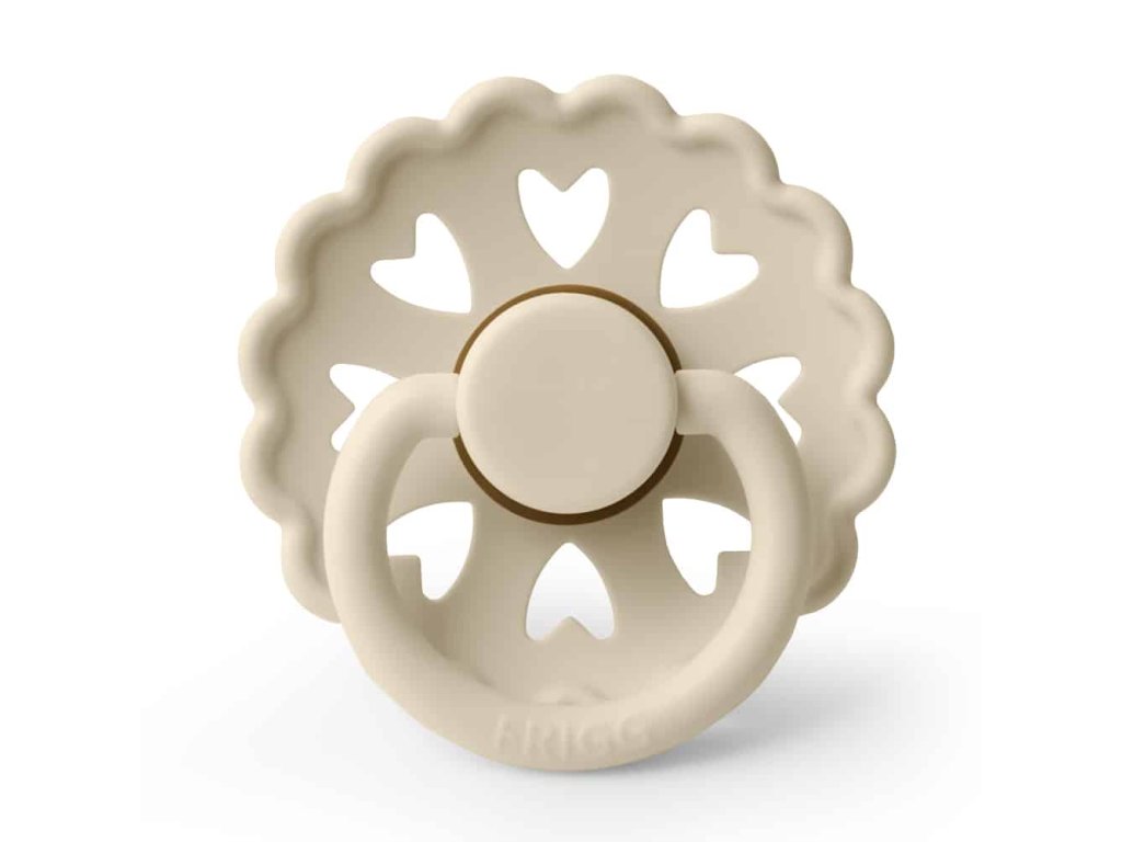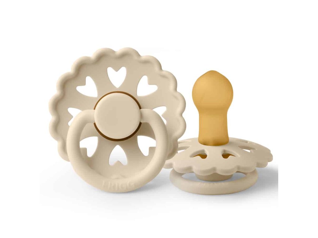 Cumlík je vyrobený z prírodného kaučuku, pričom jeho tvar je zakrivený jemne smerom von, aby sa zabránilo podráždeniu pokožky. Každý cumlík je strojovo testovaný na závadnosť, aby sa k našim najdôležitejším zákazníkom dostal vždy perfektný produkt. Tvar štítu je zakrivený jemne smerom von, aby sa zabránilo podráždeniu pokožky. Pre väčšiu bezpečnosť sú v štíte prítomné vzduchové otvory. Nový Click-lock™ systém odlišuje cumlík FRIGG od akéhokoľvek iného cumlíku na trhu. Vďaka novému 4-krokovému procesu spájania jednotlivých častí cumlíka je možné cumlík zostaviť jednoduchým kliknutím, bez použitia akejkoľvek sily. Vďaka tomu je cumlík ešte odolnejší ako predtým. FRIGG je 100% dizajnovaný a vyrobený v Dánsku ako jediná značka cumlíkov na svete! Každý cumlík je zároveň vyrobený na princípe zero-waste, čím sa minimalizuje odpad materiálu vďaka možnosti recyklácie. Cumlíky sú vyrábané s maximálny ohľadom na životné prostredie, a zároveň s dôrazom na uspokojenie potrieb najmenších detí. FRIGG kladie dôraz aj na bezpečnosť - cumlíky sú vyrábané bez BPA, PVC a ftalátov, každý cumlík podstupuje stretch a vacuum test pred uvedením do predaja a sú vyrábané podľa najprísnejšej normy EN1400-A2. Spoznajte svet značky FRIGG, inšpirovaný bohyňou zeme, vzduchu a plodnosti podľa severskej mytológie a nechajte sa zlákať dokonalosťou tvarov a farieb. Kolekcia cumlíkov FRIGG Fairytale je inšpirovaná umeleckou tvorbou dánskeho autora H.C. Andersena. Vrúbkované okraje a malé srdiečka vo vnútri štítu napodobňujú jeden z jeho papierových výstrižkov. Každá farba cumlíka je pomenovaná podľa jeho známych rozprávok, ktoré dodávajú cumlíkom nádych fantázie. Tento mimoriadne krásny cumlík, s moderným dizajnom a elegantnými detailmi, upúta pozornosť každej štýlovej mamičky. Vlastnosti: