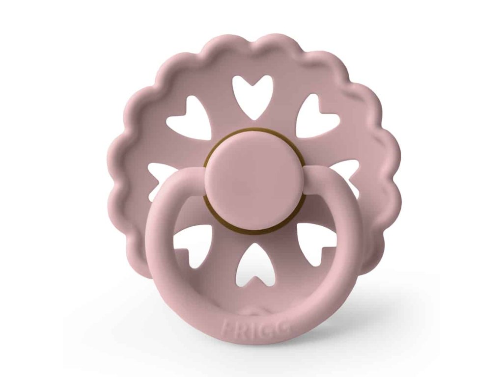 Cumlík je vyrobený z prírodného kaučuku, pričom jeho tvar je zakrivený jemne smerom von, aby sa zabránilo podráždeniu pokožky. Každý cumlík je strojovo testovaný na závadnosť, aby sa k našim najdôležitejším zákazníkom dostal vždy perfektný produkt. Tvar štítu je zakrivený jemne smerom von, aby sa zabránilo podráždeniu pokožky. Pre väčšiu bezpečnosť sú v štíte prítomné vzduchové otvory. Nový Click-lock™ systém odlišuje cumlík FRIGG od akéhokoľvek iného cumlíku na trhu. Vďaka novému 4-krokovému procesu spájania jednotlivých častí cumlíka je možné cumlík zostaviť jednoduchým kliknutím, bez použitia akejkoľvek sily. Vďaka tomu je cumlík ešte odolnejší ako predtým. FRIGG je 100% dizajnovaný a vyrobený v Dánsku ako jediná značka cumlíkov na svete! Každý cumlík je zároveň vyrobený na princípe zero-waste, čím sa minimalizuje odpad materiálu vďaka možnosti recyklácie. Cumlíky sú vyrábané s maximálny ohľadom na životné prostredie, a zároveň s dôrazom na uspokojenie potrieb najmenších detí. FRIGG kladie dôraz aj na bezpečnosť - cumlíky sú vyrábané bez BPA, PVC a ftalátov, každý cumlík podstupuje stretch a vacuum test pred uvedením do predaja a sú vyrábané podľa najprísnejšej normy EN1400-A2. Spoznajte svet značky FRIGG, inšpirovaný bohyňou zeme, vzduchu a plodnosti podľa severskej mytológie a nechajte sa zlákať dokonalosťou tvarov a farieb. Kolekcia cumlíkov FRIGG Fairytale je inšpirovaná umeleckou tvorbou dánskeho autora H.C. Andersena. Vrúbkované okraje a malé srdiečka vo vnútri štítu napodobňujú jeden z jeho papierových výstrižkov. Každá farba cumlíka je pomenovaná podľa jeho známych rozprávok, ktoré dodávajú cumlíkom nádych fantázie. Tento mimoriadne krásny cumlík, s moderným dizajnom a elegantnými detailmi, upúta pozornosť každej štýlovej mamičky. Vlastnosti: