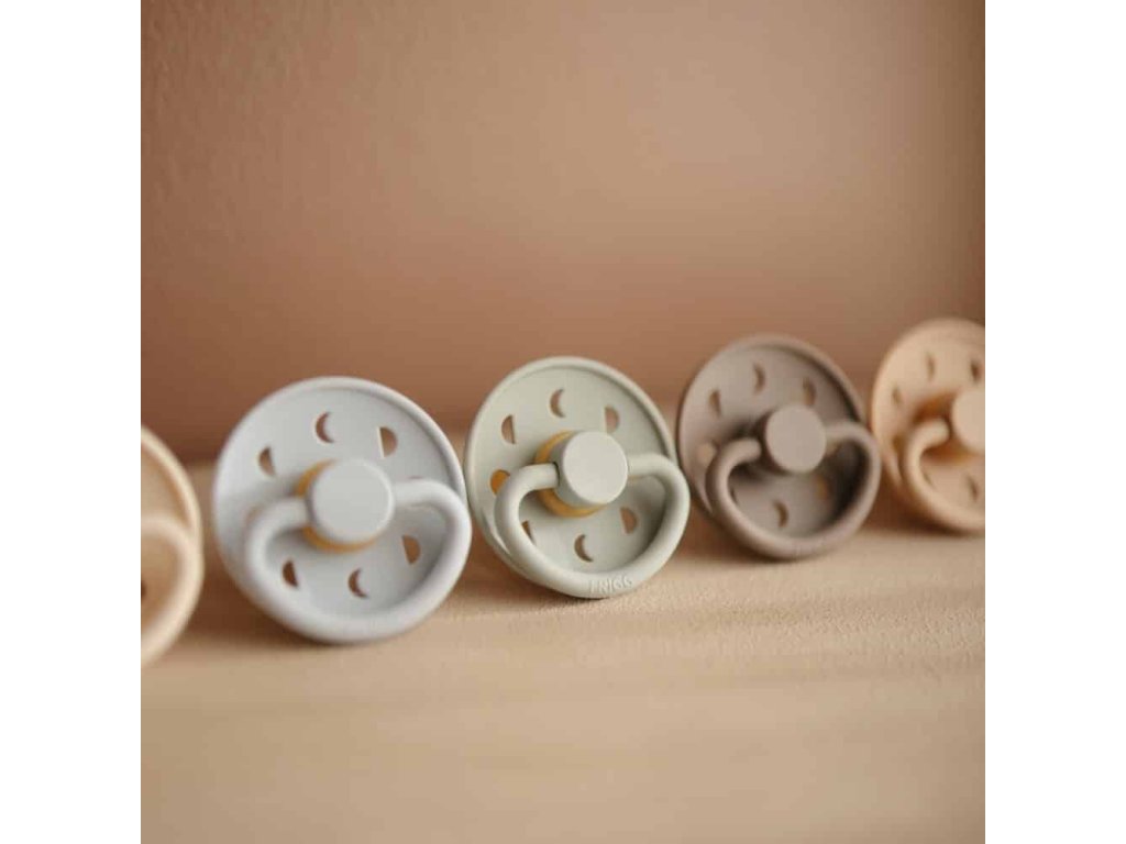 Cumlík je vyrobený zo silikónu medicínskeho stupňa s novým povrchom SilkySoft™, ktorý predstavuje najvyššiu kvalitu silikónu s ešte mäkším povrchom ako predtým, pre prirodzenejšie satie a ešte bezpečnejšiu voľbu pre detské podnebie a ďasná. Každý cumlík je strojovo testovaný na závadnosť, aby sa k našim najdôležitejším zákazníkom dostal vždy perfektný produkt. Tvar štítu je zakrivený jemne smerom von, aby sa zabránilo podráždeniu pokožky. Pre väčšiu bezpečnosť sú v štíte prítomné vzduchové otvory. Nový Click-lock™ systém odlišuje cumlík FRIGG od akéhokoľvek iného cumlíku na trhu. Vďaka novému 4-krokovému procesu spájania jednotlivých častí cumlíka je možné cumlík zostaviť jednoduchým kliknutím, bez použitia akejkoľvek sily. Vďaka tomu je cumlík ešte odolnejší ako predtým. FRIGG je 100% dizajnovaný a vyrobený v Dánsku ako jediná značka cumlíkov na svete! Každý cumlík je zároveň vyrobený na princípe zero-waste, čím sa minimalizuje odpad materiálu vďaka možnosti recyklácie. Cumlíky sú vyrábané s maximálny ohľadom na životné prostredie, a zároveň s dôrazom na uspokojenie potrieb najmenších detí. FRIGG kladie dôraz aj na bezpečnosť - cumlíky sú vyrábané bez BPA, PVC a ftalátov, každý cumlík podstupuje stretch a vacuum test pred uvedením do predaja a sú vyrábané podľa najprísnejšej normy EN1400-A2. Spoznajte svet značky FRIGG, inšpirovaný bohyňou zeme, vzduchu a plodnosti podľa severskej mytológie a nechajte sa zlákať dokonalosťou tvarov a farieb. Vlastnosti: