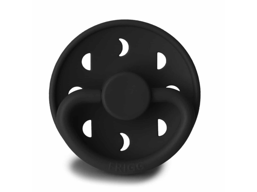 Silikónový cumlík, vhodný pre deti od 6 mesiacov, so vzorom mesiacov.