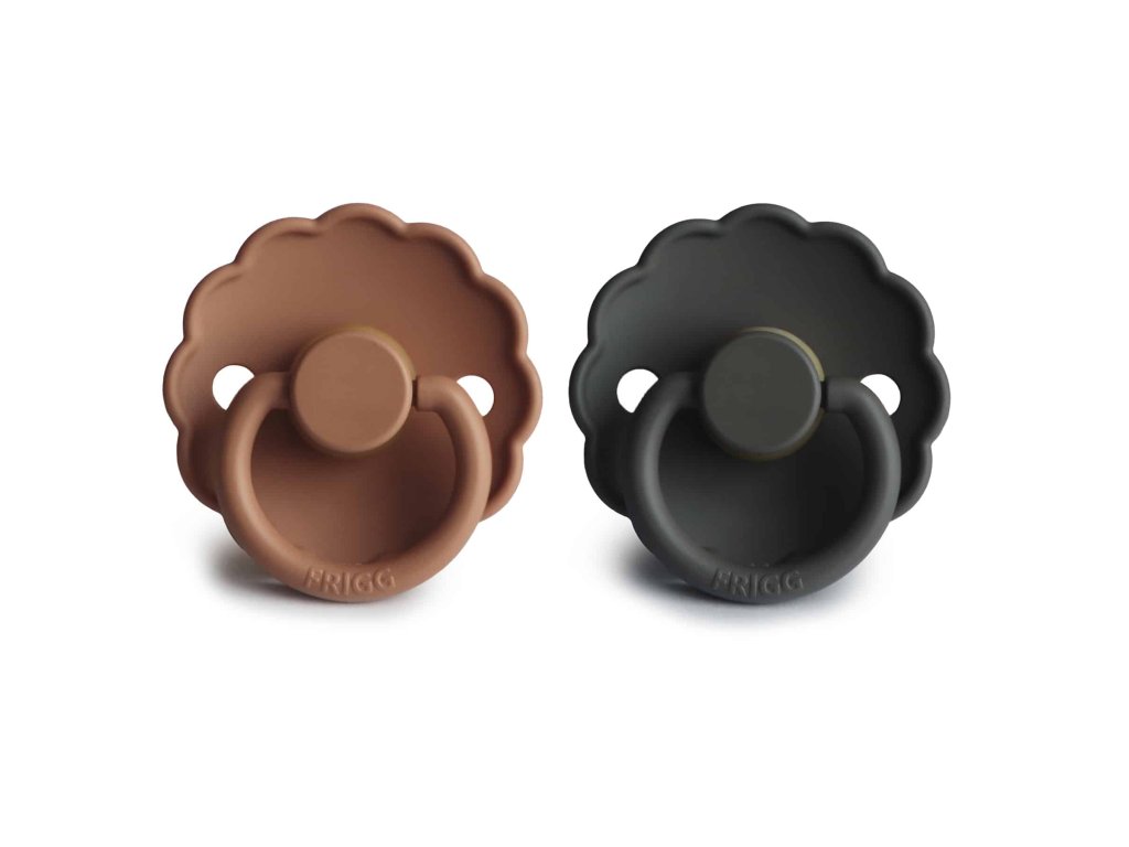Cumlíky sú vyrobené z prírodného kaučuku, pričom ich tvar je zakrivený jemne smerom von, aby sa zabránilo podráždeniu pokožky. Každý cumlík je strojovo testovaný na závadnosť, aby sa k našim najdôležitejším zákazníkom dostal vždy perfektný produkt. Pre väčšiu bezpečnosť sú v štíte prítomné vzduchové otvory. FRIGG je 100% dizajnovaný a vyrobený v Dánsku ako jediná značka cumlíkov na svete! Každý cumlík je zároveň vyrobený na princípe zero-waste, čím sa minimalizuje odpad materiálu vďaka možnosti recyklácie. Cumlíky sú vyrábané s maximálnym ohľadom na životné prostredie, a zároveň s dôrazom na uspokojenie potrieb najmenších detí. FRIGG kladie dôraz aj na bezpečnosť - cumlíky sú vyrábané bez BPA, PVC a ftalátov, každý cumlík podstupuje stretch a vacuum test pred uvedením do predaja a sú vyrábané podľa najprísnejšej normy EN1400-A2. Spoznajte svet značky FRIGG, inšpirovaný bohyňou zeme, vzduchu a plodnosti podľa severskej mytológie a nechajte sa zlákať dokonalosťou tvarov a farieb. Cumlíky FRIGG Daisy s vrúbkovanými okrajmi, ktoré napodobňujú lupene kvetov, sú základom elegantného dizajnu. Kvetinové a moderné detaily upútajú pozornosť každej štýlovej mamičky. Vďaka tomu sa FRIGG perfektne hodí pre dnešné matky, ktoré pri výbere základných potrieb pre bábätko prikladajú veľký význam klasickému dizajnu s modernými prvkami. Vlastnosti: - 100% navrhnuté v Dánsku - 100% vyrobené v Dánsku - každý cumlík musí prejsť naťahovacím a vákuovým testom - materiál štítu: Polypropylén (PP) - bezpečnostná norma: EN1400 + test A2 Podrobnosti o kaučukových cumlíkoch veľkosti 1: - materiál: 100% prírodný kaučuk - veľkosť: 27 mm - odporúčaný vek: 0-6 mesiacov