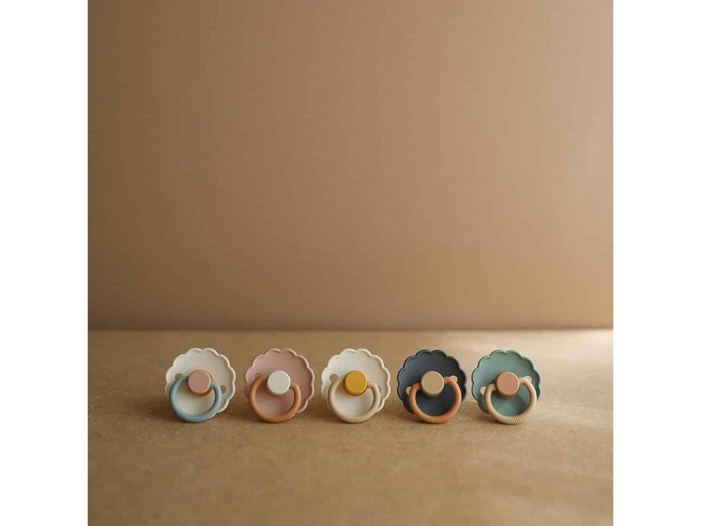 Cumlíky sú vyrobené z prírodného kaučuku, pričom ich tvar je zakrivený jemne smerom von, aby sa zabránilo podráždeniu pokožky. Každý cumlík je strojovo testovaný na závadnosť, aby sa k našim najdôležitejším zákazníkom dostal vždy perfektný produkt. Pre väčšiu bezpečnosť sú v štíte prítomné vzduchové otvory. FRIGG je 100% dizajnovaný a vyrobený v Dánsku ako jediná značka cumlíkov na svete! Každý cumlík je zároveň vyrobený na princípe zero-waste, čím sa minimalizuje odpad materiálu vďaka možnosti recyklácie. Cumlíky sú vyrábané s maximálnym ohľadom na životné prostredie, a zároveň s dôrazom na uspokojenie potrieb najmenších detí. FRIGG kladie dôraz aj na bezpečnosť - cumlíky sú vyrábané bez BPA, PVC a ftalátov, každý cumlík podstupuje stretch a vacuum test pred uvedením do predaja a sú vyrábané podľa najprísnejšej normy EN1400-A2. Spoznajte svet značky FRIGG, inšpirovaný bohyňou zeme, vzduchu a plodnosti podľa severskej mytológie a nechajte sa zlákať dokonalosťou tvarov a farieb. Cumlíky FRIGG Daisy s vrúbkovanými okrajmi, ktoré napodobňujú lupene kvetov, sú základom elegantného dizajnu. Kvetinové a moderné detaily upútajú pozornosť každej štýlovej mamičky. Vďaka tomu sa FRIGG perfektne hodí pre dnešné matky, ktoré pri výbere základných potrieb pre bábätko prikladajú veľký význam klasickému dizajnu s modernými prvkami. Vlastnosti: - 100% navrhnuté v Dánsku - 100% vyrobené v Dánsku - každý cumlík musí prejsť naťahovacím a vákuovým testom - materiál štítu: Polypropylén (PP) - bezpečnostná norma: EN1400 + test A2