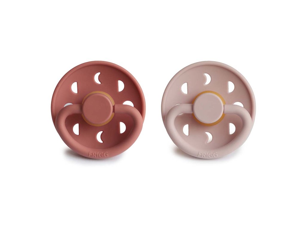 Dvojbalenie kaučukových cumlíkov, vhodných pre deti od 6 mesiacov, so vzorom mesiacov.