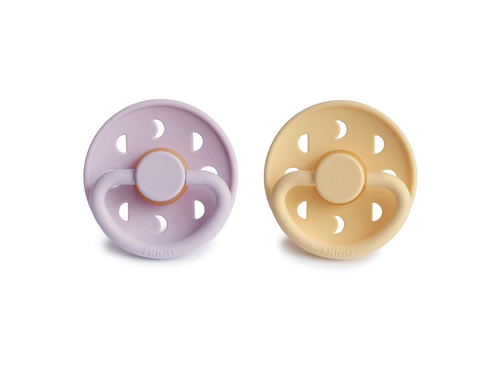 Dvojbalenie kaučukových cumlíkov, vhodných pre deti od 0-6 mesiacov, so vzorom mesiacov.