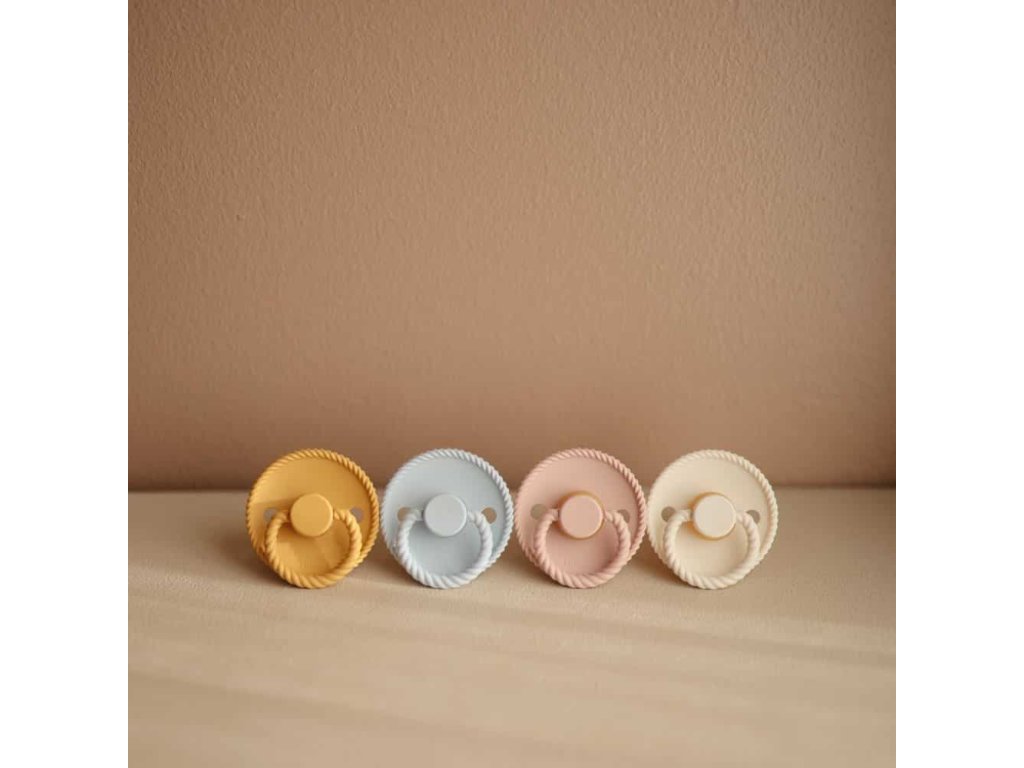 Dvojbalenie silikónových cumlíkov, vhodných pre deti od 6 mesiacov, so vzorom lana.