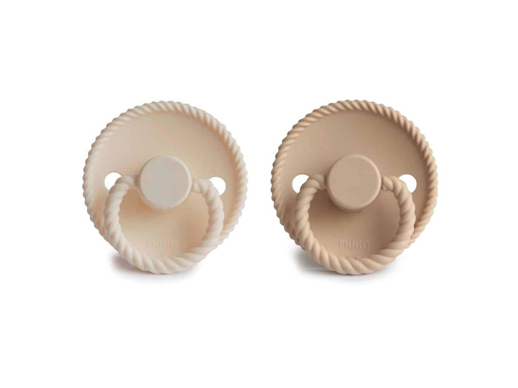 Dvojbalenie silikónových cumlíkov, vhodných pre deti od 6 mesiacov, so vzorom lana.