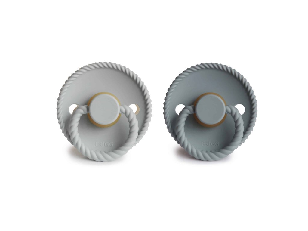 Dvojbalenie kaučukových cumlíkov, vhodných pre deti od 6 mesiacov, so vzorom lana.