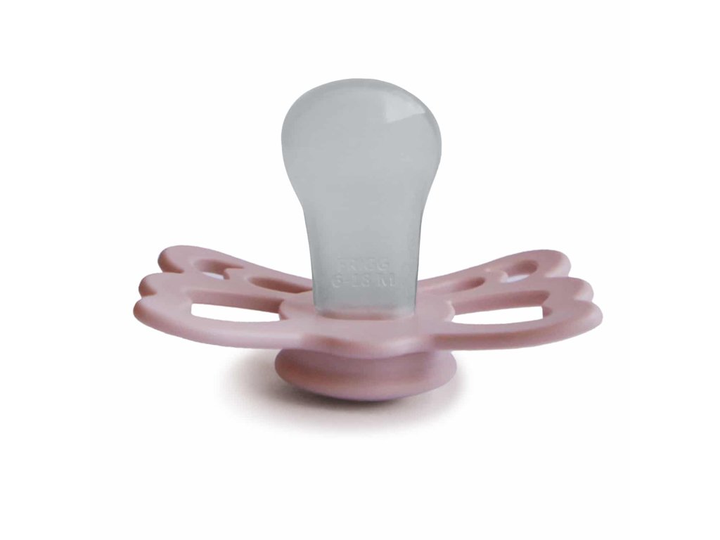 FRIGG Butterfly sú anatomické cumlíky, ktoré kopírujú tvar úst. Cumlíky sú špeciálne navrhnuté tak, aby vyvíjali menší tlak na podnebie, ďasná a čeľuste, vďaka čomu sa zaraďujú k najšetrnejším typom cumlíkov. Tým sa znižuje riziko vývoja krivých zubov. Ortodontický dizajn je ideálny na podporu správneho vývoja detských zúbkov, čeľuste a podnebia. Cumlíky sú vyrobené zo silikónu medicínskeho stupňa s novým povrchom SilkySoft™, ktorý predstavuje najvyššiu kvalitu silikónu s ešte mäkším povrchom ako predtým, pre prirodzenejšie satie a ešte bezpečnejšiu voľbu pre detské podnebie a ďasná. Každý cumlík je strojovo testovaný na závadnosť, aby sa k našim najdôležitejším zákazníkom dostal vždy perfektný produkt. Tvar cumlíkov FRIGG Butterfly pripomína motýľa. Štít so zvlnenými okrajmi má veľké vzduchové otvory pre väčšiu bezpečnosť a jeho okrúhly stred krásne zvýrazňuje eleganciu cumlíkov. Nový Click-lock™ systém odlišuje cumlíky FRIGG od akéhokoľvek iného cumlíkov na trhu. Vďaka novému 4-krokovému procesu spájania jednotlivých častí cumlíkov je možné cumlíky zostaviť jednoduchým kliknutím, bez použitia akejkoľvek sily. Vďaka tomu sú cumlíky ešte odolnejšie ako predtým. FRIGG je 100% dizajnovaný a vyrobený v Dánsku ako jediná značka cumlíkov na svete! Každý cumlík je zároveň vyrobený na princípe zero-waste, čím sa minimalizuje odpad materiálu vďaka možnosti recyklácie. Cumlíky sú vyrábané s maximálny ohľadom na životné prostredie, a zároveň s dôrazom na uspokojenie potrieb najmenších detí. FRIGG kladie dôraz aj na bezpečnosť - cumlíky sú vyrábané bez BPA, PVC a ftalátov, každý cumlík podstupuje stretch a vacuum test pred uvedením do predaja a sú vyrábané podľa najprísnejšej normy EN1400-A2. Cumlíky FRIGG Butterfly sú inšpirované krásnym motýľom. Nielen svojím vzhľadom, ale aj magickou premenou. Aby sa húsenica stala motýľom, prechádza procesom transformácie. Počas tohto procesu húsenica zostáva v kukle a nakoniec rozkvitne ako krásny motýľ. Táto magická premena je symbolom rozvoja života. Aj dieťatko prechádza rôznymi vývojovými štádiami v matkinom lone a na konci transformačného procesu sa dieťa narodí, aby rozkvitlo vo veľkom svete. Spoznajte svet značky FRIGG, inšpirovaný bohyňou zeme, vzduchu a plodnosti podľa severskej mytológie a nechajte sa zlákať dokonalosťou tvarov a farieb. Vlastnosti: