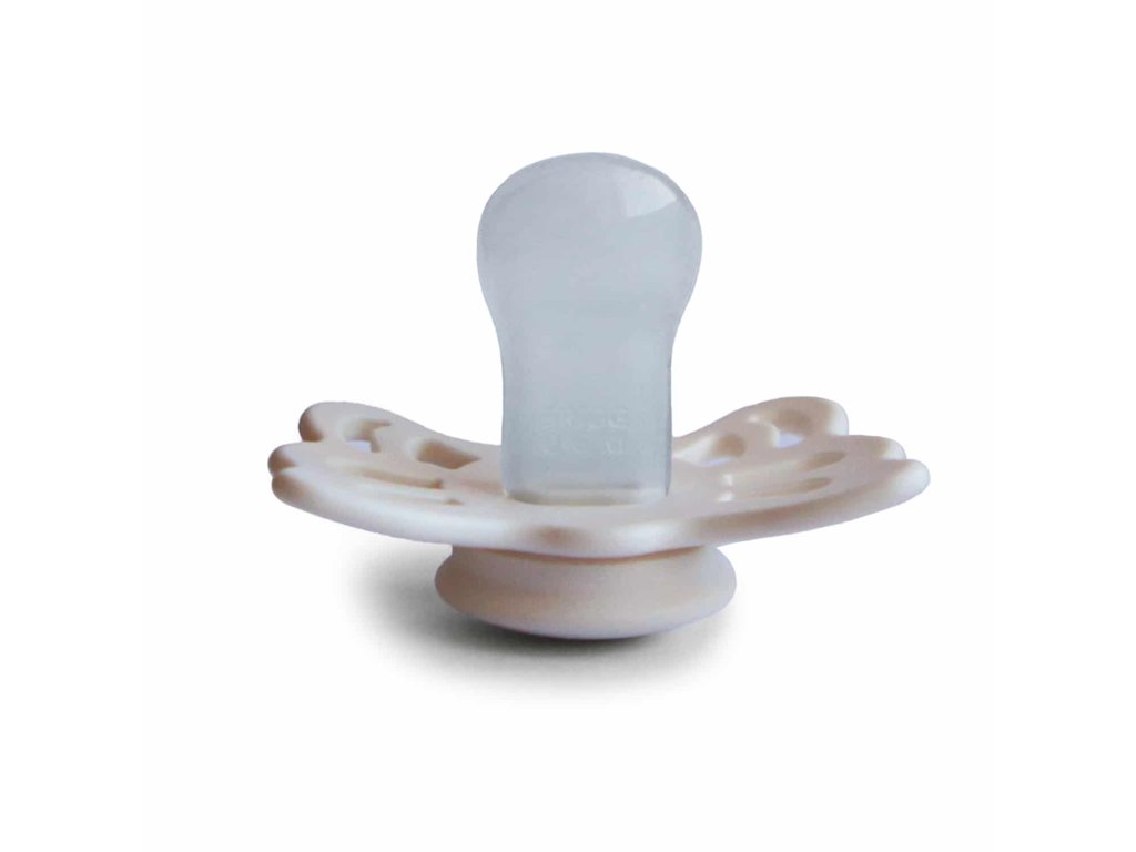 FRIGG Butterfly sú anatomické cumlíky, ktoré kopírujú tvar úst. Cumlíky sú špeciálne navrhnuté tak, aby vyvíjali menší tlak na podnebie, ďasná a čeľuste, vďaka čomu sa zaraďujú k najšetrnejším typom cumlíkov. Tým sa znižuje riziko vývoja krivých zubov. Ortodontický dizajn je ideálny na podporu správneho vývoja detských zúbkov, čeľuste a podnebia. Cumlíky sú vyrobené zo silikónu medicínskeho stupňa s novým povrchom SilkySoft™, ktorý predstavuje najvyššiu kvalitu silikónu s ešte mäkším povrchom ako predtým, pre prirodzenejšie satie a ešte bezpečnejšiu voľbu pre detské podnebie a ďasná. Každý cumlík je strojovo testovaný na závadnosť, aby sa k našim najdôležitejším zákazníkom dostal vždy perfektný produkt. Tvar cumlíkov FRIGG Butterfly pripomína motýľa. Štít so zvlnenými okrajmi má veľké vzduchové otvory pre väčšiu bezpečnosť a jeho okrúhly stred krásne zvýrazňuje eleganciu cumlíkov. Nový Click-lock™ systém odlišuje cumlíky FRIGG od akéhokoľvek iného cumlíkov na trhu. Vďaka novému 4-krokovému procesu spájania jednotlivých častí cumlíkov je možné cumlíky zostaviť jednoduchým kliknutím, bez použitia akejkoľvek sily. Vďaka tomu sú cumlíky ešte odolnejšie ako predtým. FRIGG je 100% dizajnovaný a vyrobený v Dánsku ako jediná značka cumlíkov na svete! Každý cumlík je zároveň vyrobený na princípe zero-waste, čím sa minimalizuje odpad materiálu vďaka možnosti recyklácie. Cumlíky sú vyrábané s maximálny ohľadom na životné prostredie, a zároveň s dôrazom na uspokojenie potrieb najmenších detí. FRIGG kladie dôraz aj na bezpečnosť - cumlíky sú vyrábané bez BPA, PVC a ftalátov, každý cumlík podstupuje stretch a vacuum test pred uvedením do predaja a sú vyrábané podľa najprísnejšej normy EN1400-A2. Cumlíky FRIGG Butterfly sú inšpirované krásnym motýľom. Nielen svojím vzhľadom, ale aj magickou premenou. Aby sa húsenica stala motýľom, prechádza procesom transformácie. Počas tohto procesu húsenica zostáva v kukle a nakoniec rozkvitne ako krásny motýľ. Táto magická premena je symbolom rozvoja života. Aj dieťatko prechádza rôznymi vývojovými štádiami v matkinom lone a na konci transformačného procesu sa dieťa narodí, aby rozkvitlo vo veľkom svete. Spoznajte svet značky FRIGG, inšpirovaný bohyňou zeme, vzduchu a plodnosti podľa severskej mytológie a nechajte sa zlákať dokonalosťou tvarov a farieb. Vlastnosti: