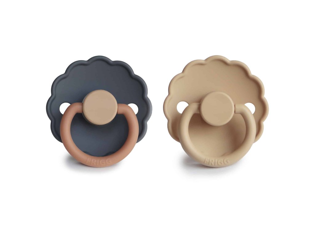 Cumlík je vyrobený zo silikónu medicínskeho stupňa s novým povrchom SilkySoft™, ktorý predstavuje najvyššiu kvalitu silikónu s ešte mäkším povrchom ako predtým, pre prirodzenejšie satie a ešte bezpečnejšiu voľbu pre detské podnebie a ďasná. Každý cumlík je strojovo testovaný na závadnosť, aby sa k našim najdôležitejším zákazníkom dostal vždy perfektný produkt. Tvar štítu je zakrivený jemne smerom von, aby sa zabránilo podráždeniu pokožky. Pre väčšiu bezpečnosť sú v štíte prítomné vzduchové otvory. Nový Click-lock™ systém odlišuje cumlík FRIGG od akéhokoľvek iného cumlíku na trhu. Vďaka novému 4-krokovému procesu spájania jednotlivých častí cumlíka je možné cumlík zostaviť jednoduchým kliknutím, bez použitia akejkoľvek sily. Vďaka tomu je cumlík ešte odolnejší ako predtým. FRIGG je 100% dizajnovaný a vyrobený v Dánsku ako jediná značka cumlíkov na svete! Každý cumlík je zároveň vyrobený na princípe zero-waste, čím sa minimalizuje odpad materiálu vďaka možnosti recyklácie. Cumlíky sú vyrábané s maximálny ohľadom na životné prostredie, a zároveň s dôrazom na uspokojenie potrieb najmenších detí. FRIGG kladie dôraz aj na bezpečnosť - cumlíky sú vyrábané bez BPA, PVC a ftalátov, každý cumlík podstupuje stretch a vacuum test pred uvedením do predaja a sú vyrábané podľa najprísnejšej normy EN1400-A2. Spoznajte svet značky FRIGG, inšpirovaný bohyňou zeme, vzduchu a plodnosti podľa severskej mytológie a nechajte sa zlákať dokonalosťou tvarov a farieb. Cumlík FRIGG Daisy s vrúbkovanými okrajmi, ktoré napodobňujú lupene kvetov, je základom elegantného dizajnu. Kvetinové a moderné detaily upútajú pozornosť každej štýlovej mamičky. Vďaka tomu sa FRIGG perfektne hodí pre dnešné matky, ktoré pri výbere základných potrieb pre bábätko prikladajú veľký význam klasickému dizajnu s modernými prvkami. Vlastnosti: