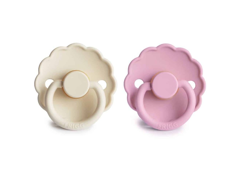 Cumlíky FRIGG Daisy s vrúbkovanými okrajmi, ktoré napodobňujú lupene kvetov, sú podstatou elegantného dizajnu. Kvetinové a moderné detaily upútajú pozornosť každej štýlovo orientovanej mamičky. Vďaka tomu sa FRIGG perfektne hodí pre dnešné matky, ktoré pri výbere základných potrieb pre bábätko prikladajú veľký význam klasickému dizajnu s modernými prvkami. Cumlík FRIGG Daisy plný šarmu je dostupný v monochromatických aj zmiešaných farbách. FRIGG predstavuje novú farbu: LUPINE Kvet vlčieho bôbu s týčiacimi sa hrotmi zdobenými zhlukmi kvetov podobných hrášku je skutočným vizuálnym potešením a inšpiráciou pre túto novú farbu FRIGG; veľmi pekný fialový pastelový odtieň. Fascinujúci kvet lupiny vnáša do dizajnu FRIGG Daisy nádych podmanivej krásy. FRIGG Daisy je cumlík s okrúhlym tvarom. Okrúhly cumlík tvarom aj materiálom pripomína materinský prsník. Vysvetlením je, že keď sa dieťa chystá dojčiť, jazyk sa zroluje okolo bradavky a vytvorí podtlak, ktorý spôsobí tok mlieka. Keď dieťa saje okrúhly cumlík, gúľa okolo neho jazyk rovnako. Okrúhly tvar odporúčajú detskí chiropraktici a pôrodnice v Dánsku. Detaily cumlíka FRIGG: