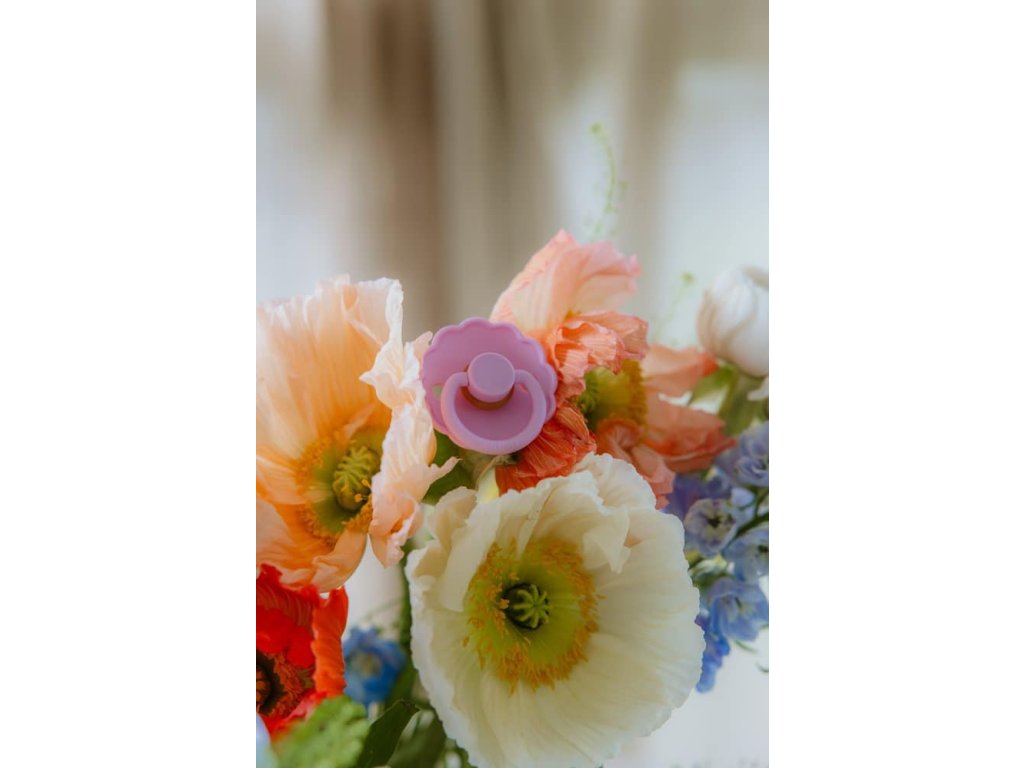 Dvojbalenie kaučukových cumlíkov, vhodných pre deti od 6 mesiacov, so vzorom kvietka.
