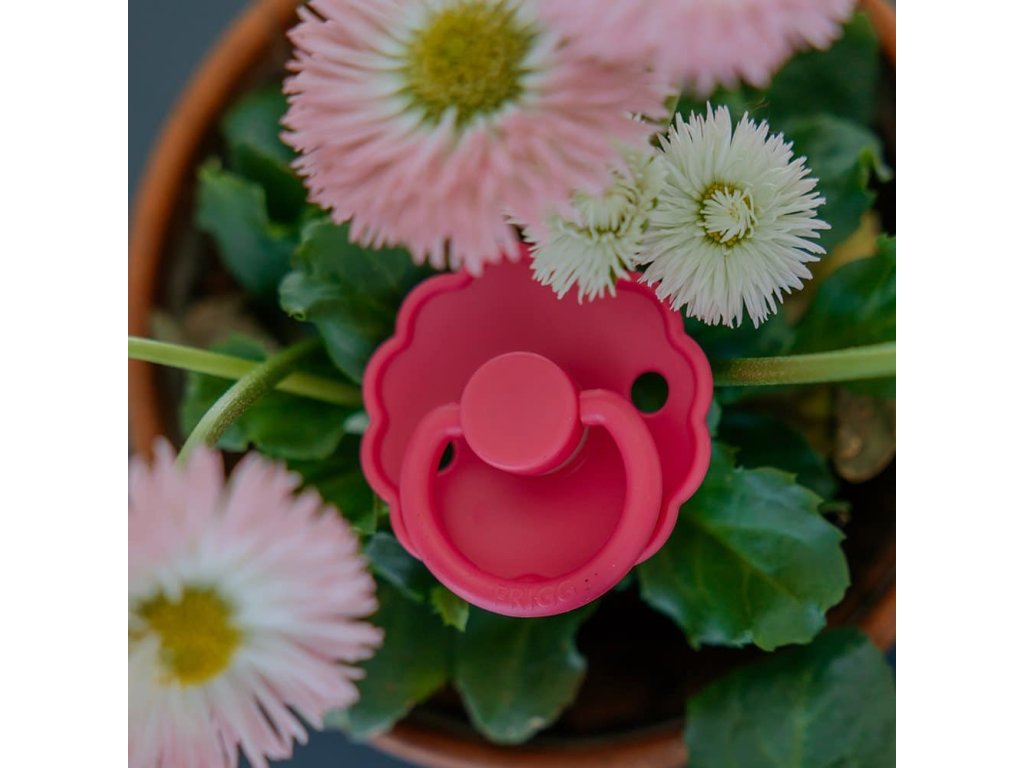 Cumlík je vyrobený zo silikónu medicínskeho stupňa s novým povrchom SilkySoft™, ktorý predstavuje najvyššiu kvalitu silikónu s ešte mäkším povrchom ako predtým, pre prirodzenejšie satie a ešte bezpečnejšiu voľbu pre detské podnebie a ďasná. Každý cumlík je strojovo testovaný na závadnosť, aby sa k našim najdôležitejším zákazníkom dostal vždy perfektný produkt. Tvar štítu je zakrivený jemne smerom von, aby sa zabránilo podráždeniu pokožky. Pre väčšiu bezpečnosť sú v štíte prítomné vzduchové otvory. Nový Click-lock™ systém odlišuje cumlík FRIGG od akéhokoľvek iného cumlíku na trhu. Vďaka novému 4-krokovému procesu spájania jednotlivých častí cumlíka je možné cumlík zostaviť jednoduchým kliknutím, bez použitia akejkoľvek sily. Vďaka tomu je cumlík ešte odolnejší ako predtým. FRIGG je 100% dizajnovaný a vyrobený v Dánsku ako jediná značka cumlíkov na svete! Každý cumlík je zároveň vyrobený na princípe zero-waste, čím sa minimalizuje odpad materiálu vďaka možnosti recyklácie. Cumlíky sú vyrábané s maximálny ohľadom na životné prostredie, a zároveň s dôrazom na uspokojenie potrieb najmenších detí. FRIGG kladie dôraz aj na bezpečnosť - cumlíky sú vyrábané bez BPA, PVC a ftalátov, každý cumlík podstupuje stretch a vacuum test pred uvedením do predaja a sú vyrábané podľa najprísnejšej normy EN1400-A2. Spoznajte svet značky FRIGG, inšpirovaný bohyňou zeme, vzduchu a plodnosti podľa severskej mytológie a nechajte sa zlákať dokonalosťou tvarov a farieb. Cumlík FRIGG Daisy s vrúbkovanými okrajmi, ktoré napodobňujú lupene kvetov, je základom elegantného dizajnu. Kvetinové a moderné detaily upútajú pozornosť každej štýlovej mamičky. Vďaka tomu sa FRIGG perfektne hodí pre dnešné matky, ktoré pri výbere základných potrieb pre bábätko prikladajú veľký význam klasickému dizajnu s modernými prvkami. Vlastnosti: