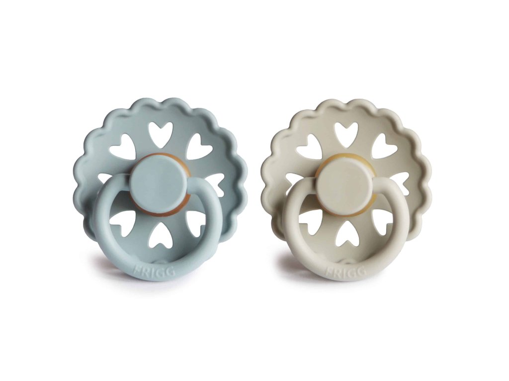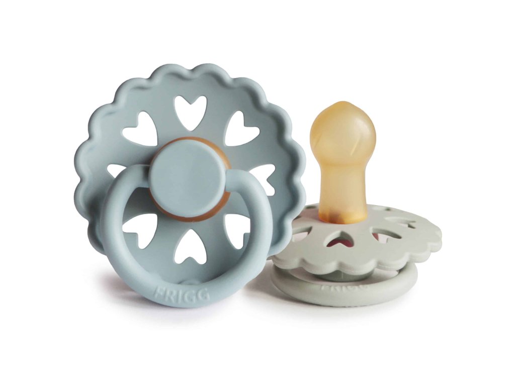 Cumlíky sú vyrobené z prírodného kaučuku, pričom ich tvar je zakrivený jemne smerom von, aby sa zabránilo podráždeniu pokožky. Každý cumlík je strojovo testovaný na závadnosť, aby sa k našim najdôležitejším zákazníkom dostal vždy perfektný produkt. Tvar štítu je zakrivený jemne smerom von, aby sa zabránilo podráždeniu pokožky. Pre väčšiu bezpečnosť sú v štíte prítomné vzduchové otvory. Nový Click-lock™ systém odlišuje cumlík FRIGG od akéhokoľvek iného cumlíku na trhu. Vďaka novému 4-krokovému procesu spájania jednotlivých častí cumlíka je možné cumlík zostaviť jednoduchým kliknutím, bez použitia akejkoľvek sily. Vďaka tomu je cumlík ešte odolnejší ako predtým. FRIGG je 100% dizajnovaný a vyrobený v Dánsku ako jediná značka cumlíkov na svete! Každý cumlík je zároveň vyrobený na princípe zero-waste, čím sa minimalizuje odpad materiálu vďaka možnosti recyklácie. Cumlíky sú vyrábané s maximálny ohľadom na životné prostredie, a zároveň s dôrazom na uspokojenie potrieb najmenších detí. FRIGG kladie dôraz aj na bezpečnosť - cumlíky sú vyrábané bez BPA, PVC a ftalátov, každý cumlík podstupuje stretch a vacuum test pred uvedením do predaja a sú vyrábané podľa najprísnejšej normy EN1400-A2. Spoznajte svet značky FRIGG, inšpirovaný bohyňou zeme, vzduchu a plodnosti podľa severskej mytológie a nechajte sa zlákať dokonalosťou tvarov a farieb. Kolekcia cumlíkov FRIGG Fairytale je inšpirovaná umeleckou tvorbou dánskeho autora H.C. Andersena. Vrúbkované okraje a malé srdiečka vo vnútri štítu napodobňujú jeden z jeho papierových výstrižkov. Každá farba cumlíka je pomenovaná podľa jeho známych rozprávok, ktoré dodávajú cumlíkom nádych fantázie. Tento mimoriadne krásny cumlík, s moderným dizajnom a elegantnými detailmi, upúta pozornosť každej štýlovej mamičky. Vlastnosti: