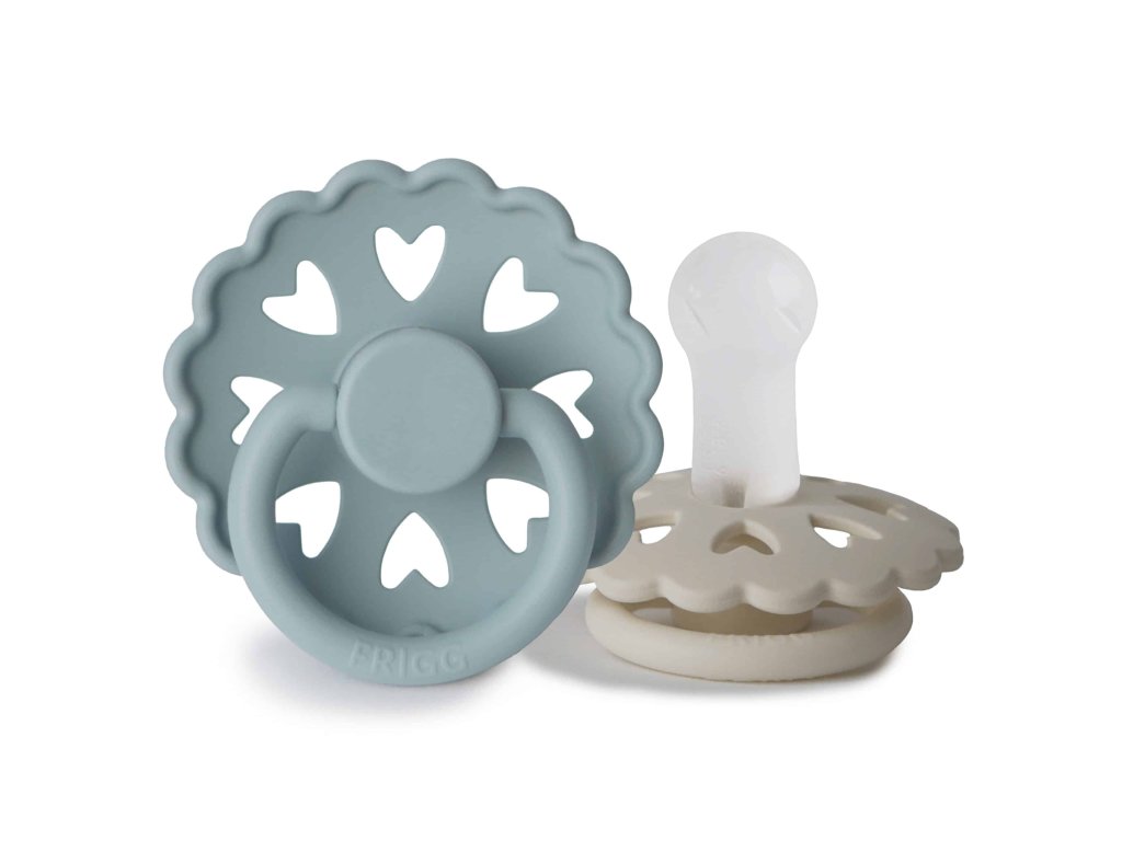 Cumlík je vyrobený zo silikónu medicínskeho stupňa s novým povrchom SilkySoft™, ktorý predstavuje najvyššiu kvalitu silikónu s ešte mäkším povrchom ako predtým, pre prirodzenejšie satie a ešte bezpečnejšiu voľbu pre detské podnebie a ďasná. Každý cumlík je strojovo testovaný na závadnosť, aby sa k našim najdôležitejším zákazníkom dostal vždy perfektný produkt. Tvar štítu je zakrivený jemne smerom von, aby sa zabránilo podráždeniu pokožky. Pre väčšiu bezpečnosť sú v štíte prítomné vzduchové otvory. Nový Click-lock™ systém odlišuje cumlík FRIGG od akéhokoľvek iného cumlíku na trhu. Vďaka novému 4-krokovému procesu spájania jednotlivých častí cumlíka je možné cumlík zostaviť jednoduchým kliknutím, bez použitia akejkoľvek sily. Vďaka tomu je cumlík ešte odolnejší ako predtým. FRIGG je 100% dizajnovaný a vyrobený v Dánsku ako jediná značka cumlíkov na svete! Každý cumlík je zároveň vyrobený na princípe zero-waste, čím sa minimalizuje odpad materiálu vďaka možnosti recyklácie. Cumlíky sú vyrábané s maximálny ohľadom na životné prostredie, a zároveň s dôrazom na uspokojenie potrieb najmenších detí. FRIGG kladie dôraz aj na bezpečnosť - cumlíky sú vyrábané bez BPA, PVC a ftalátov, každý cumlík podstupuje stretch a vacuum test pred uvedením do predaja a sú vyrábané podľa najprísnejšej normy EN1400-A2. Spoznajte svet značky FRIGG, inšpirovaný bohyňou zeme, vzduchu a plodnosti podľa severskej mytológie a nechajte sa zlákať dokonalosťou tvarov a farieb. Kolekcia cumlíkov FRIGG Fairytale je inšpirovaná umeleckou tvorbou dánskeho autora H.C. Andersena. Vrúbkované okraje a malé srdiečka vo vnútri štítu napodobňujú jeden z jeho papierových výstrižkov. Každá farba cumlíka je pomenovaná podľa jeho známych rozprávok, ktoré dodávajú cumlíkom nádych fantázie. Tento mimoriadne krásny cumlík, s moderným dizajnom a elegantnými detailmi, upúta pozornosť každej štýlovej mamičky. Vlastnosti: