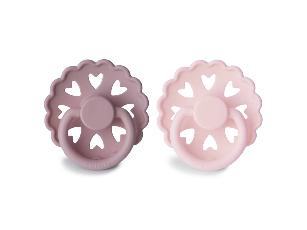 Cumlík je vyrobený zo silikónu medicínskeho stupňa s novým povrchom SilkySoft™, ktorý predstavuje najvyššiu kvalitu silikónu s ešte mäkším povrchom ako predtým, pre prirodzenejšie satie a ešte bezpečnejšiu voľbu pre detské podnebie a ďasná. Každý cumlík je strojovo testovaný na závadnosť, aby sa k našim najdôležitejším zákazníkom dostal vždy perfektný produkt. Tvar štítu je zakrivený jemne smerom von, aby sa zabránilo podráždeniu pokožky. Pre väčšiu bezpečnosť sú v štíte prítomné vzduchové otvory. Nový Click-lock™ systém odlišuje cumlík FRIGG od akéhokoľvek iného cumlíku na trhu. Vďaka novému 4-krokovému procesu spájania jednotlivých častí cumlíka je možné cumlík zostaviť jednoduchým kliknutím, bez použitia akejkoľvek sily. Vďaka tomu je cumlík ešte odolnejší ako predtým. FRIGG je 100% dizajnovaný a vyrobený v Dánsku ako jediná značka cumlíkov na svete! Každý cumlík je zároveň vyrobený na princípe zero-waste, čím sa minimalizuje odpad materiálu vďaka možnosti recyklácie. Cumlíky sú vyrábané s maximálny ohľadom na životné prostredie, a zároveň s dôrazom na uspokojenie potrieb najmenších detí. FRIGG kladie dôraz aj na bezpečnosť - cumlíky sú vyrábané bez BPA, PVC a ftalátov, každý cumlík podstupuje stretch a vacuum test pred uvedením do predaja a sú vyrábané podľa najprísnejšej normy EN1400-A2. Spoznajte svet značky FRIGG, inšpirovaný bohyňou zeme, vzduchu a plodnosti podľa severskej mytológie a nechajte sa zlákať dokonalosťou tvarov a farieb. Kolekcia cumlíkov FRIGG Fairytale je inšpirovaná umeleckou tvorbou dánskeho autora H.C. Andersena. Vrúbkované okraje a malé srdiečka vo vnútri štítu napodobňujú jeden z jeho papierových výstrižkov. Každá farba cumlíka je pomenovaná podľa jeho známych rozprávok, ktoré dodávajú cumlíkom nádych fantázie. Tento mimoriadne krásny cumlík, s moderným dizajnom a elegantnými detailmi, upúta pozornosť každej štýlovej mamičky. Vlastnosti: