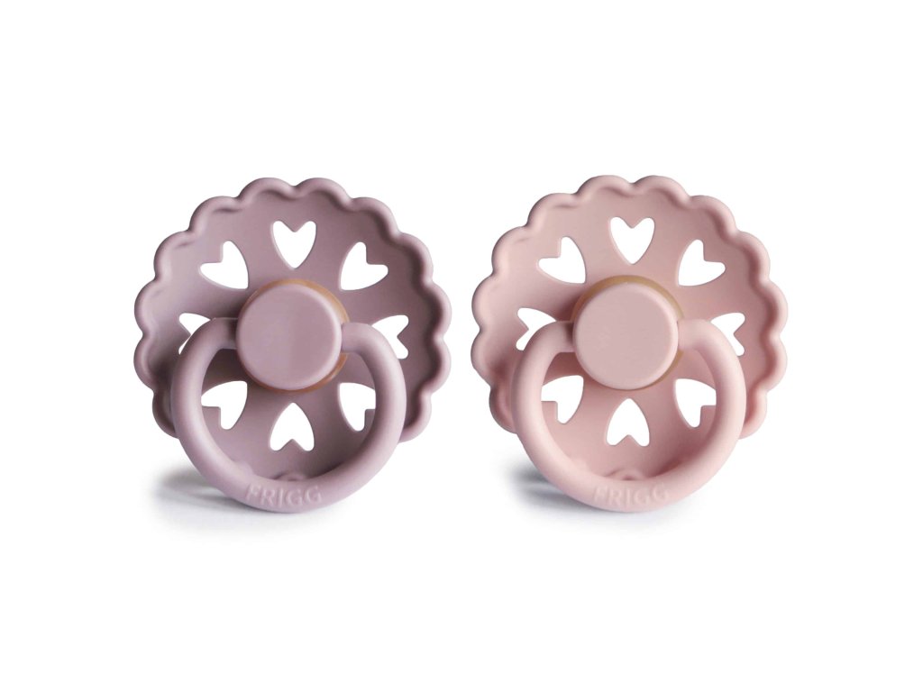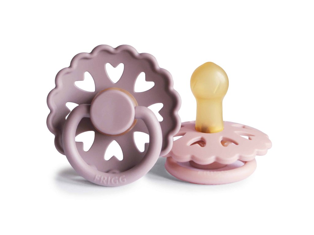 Cumlíky sú vyrobené z prírodného kaučuku, pričom ich tvar je zakrivený jemne smerom von, aby sa zabránilo podráždeniu pokožky. Každý cumlík je strojovo testovaný na závadnosť, aby sa k našim najdôležitejším zákazníkom dostal vždy perfektný produkt. Tvar štítu je zakrivený jemne smerom von, aby sa zabránilo podráždeniu pokožky. Pre väčšiu bezpečnosť sú v štíte prítomné vzduchové otvory. Nový Click-lock™ systém odlišuje cumlík FRIGG od akéhokoľvek iného cumlíku na trhu. Vďaka novému 4-krokovému procesu spájania jednotlivých častí cumlíka je možné cumlík zostaviť jednoduchým kliknutím, bez použitia akejkoľvek sily. Vďaka tomu je cumlík ešte odolnejší ako predtým. FRIGG je 100% dizajnovaný a vyrobený v Dánsku ako jediná značka cumlíkov na svete! Každý cumlík je zároveň vyrobený na princípe zero-waste, čím sa minimalizuje odpad materiálu vďaka možnosti recyklácie. Cumlíky sú vyrábané s maximálny ohľadom na životné prostredie, a zároveň s dôrazom na uspokojenie potrieb najmenších detí. FRIGG kladie dôraz aj na bezpečnosť - cumlíky sú vyrábané bez BPA, PVC a ftalátov, každý cumlík podstupuje stretch a vacuum test pred uvedením do predaja a sú vyrábané podľa najprísnejšej normy EN1400-A2. Spoznajte svet značky FRIGG, inšpirovaný bohyňou zeme, vzduchu a plodnosti podľa severskej mytológie a nechajte sa zlákať dokonalosťou tvarov a farieb. Kolekcia cumlíkov FRIGG Fairytale je inšpirovaná umeleckou tvorbou dánskeho autora H.C. Andersena. Vrúbkované okraje a malé srdiečka vo vnútri štítu napodobňujú jeden z jeho papierových výstrižkov. Každá farba cumlíka je pomenovaná podľa jeho známych rozprávok, ktoré dodávajú cumlíkom nádych fantázie. Tento mimoriadne krásny cumlík, s moderným dizajnom a elegantnými detailmi, upúta pozornosť každej štýlovej mamičky. Vlastnosti: