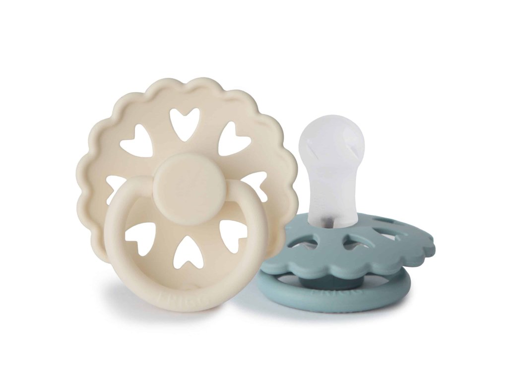 Cumlík je vyrobený zo silikónu medicínskeho stupňa s novým povrchom SilkySoft™, ktorý predstavuje najvyššiu kvalitu silikónu s ešte mäkším povrchom ako predtým, pre prirodzenejšie satie a ešte bezpečnejšiu voľbu pre detské podnebie a ďasná. Každý cumlík je strojovo testovaný na závadnosť, aby sa k našim najdôležitejším zákazníkom dostal vždy perfektný produkt. Tvar štítu je zakrivený jemne smerom von, aby sa zabránilo podráždeniu pokožky. Pre väčšiu bezpečnosť sú v štíte prítomné vzduchové otvory. Nový Click-lock™ systém odlišuje cumlík FRIGG od akéhokoľvek iného cumlíku na trhu. Vďaka novému 4-krokovému procesu spájania jednotlivých častí cumlíka je možné cumlík zostaviť jednoduchým kliknutím, bez použitia akejkoľvek sily. Vďaka tomu je cumlík ešte odolnejší ako predtým. FRIGG je 100% dizajnovaný a vyrobený v Dánsku ako jediná značka cumlíkov na svete! Každý cumlík je zároveň vyrobený na princípe zero-waste, čím sa minimalizuje odpad materiálu vďaka možnosti recyklácie. Cumlíky sú vyrábané s maximálny ohľadom na životné prostredie, a zároveň s dôrazom na uspokojenie potrieb najmenších detí. FRIGG kladie dôraz aj na bezpečnosť - cumlíky sú vyrábané bez BPA, PVC a ftalátov, každý cumlík podstupuje stretch a vacuum test pred uvedením do predaja a sú vyrábané podľa najprísnejšej normy EN1400-A2. Spoznajte svet značky FRIGG, inšpirovaný bohyňou zeme, vzduchu a plodnosti podľa severskej mytológie a nechajte sa zlákať dokonalosťou tvarov a farieb. Kolekcia cumlíkov FRIGG Fairytale je inšpirovaná umeleckou tvorbou dánskeho autora H.C. Andersena. Vrúbkované okraje a malé srdiečka vo vnútri štítu napodobňujú jeden z jeho papierových výstrižkov. Každá farba cumlíka je pomenovaná podľa jeho známych rozprávok, ktoré dodávajú cumlíkom nádych fantázie. Tento mimoriadne krásny cumlík, s moderným dizajnom a elegantnými detailmi, upúta pozornosť každej štýlovej mamičky. Vlastnosti: