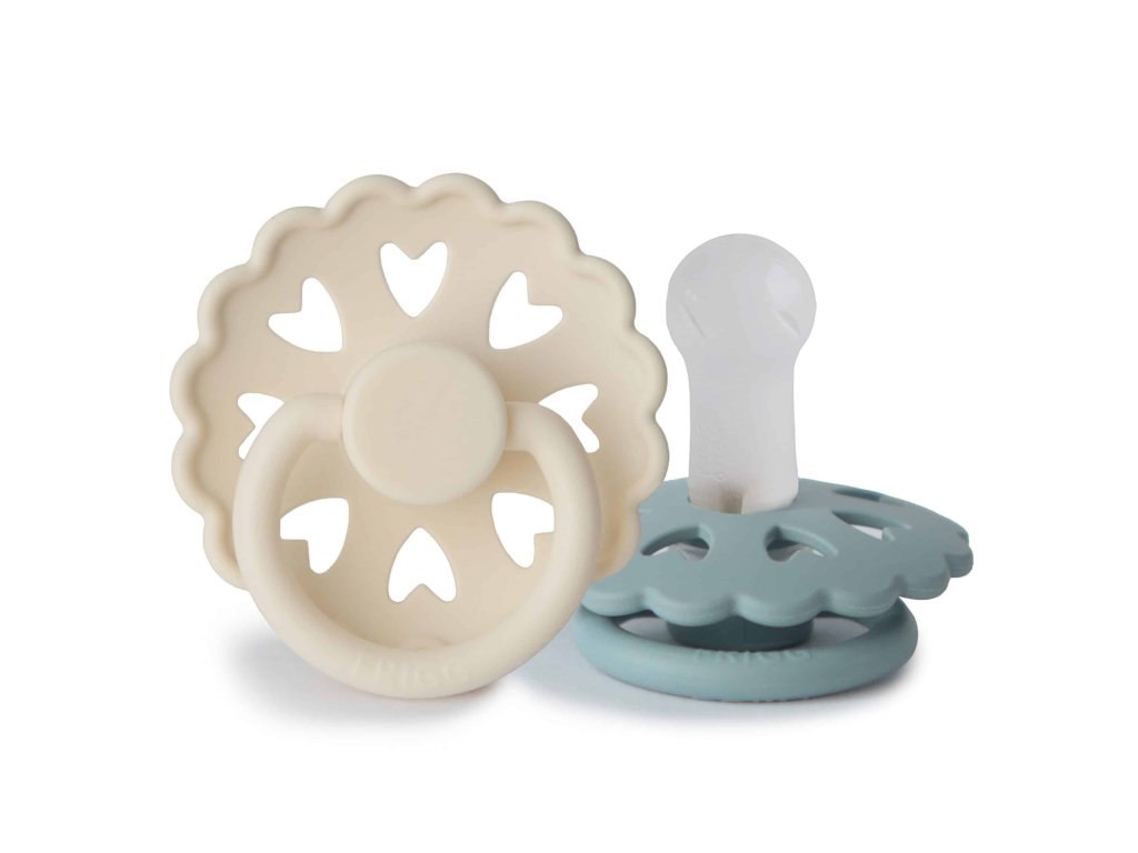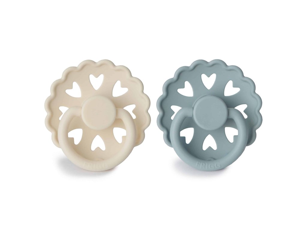 Cumlík je vyrobený zo silikónu medicínskeho stupňa s novým povrchom SilkySoft™, ktorý predstavuje najvyššiu kvalitu silikónu s ešte mäkším povrchom ako predtým, pre prirodzenejšie satie a ešte bezpečnejšiu voľbu pre detské podnebie a ďasná. Každý cumlík je strojovo testovaný na závadnosť, aby sa k našim najdôležitejším zákazníkom dostal vždy perfektný produkt. Tvar štítu je zakrivený jemne smerom von, aby sa zabránilo podráždeniu pokožky. Pre väčšiu bezpečnosť sú v štíte prítomné vzduchové otvory. Nový Click-lock™ systém odlišuje cumlík FRIGG od akéhokoľvek iného cumlíku na trhu. Vďaka novému 4-krokovému procesu spájania jednotlivých častí cumlíka je možné cumlík zostaviť jednoduchým kliknutím, bez použitia akejkoľvek sily. Vďaka tomu je cumlík ešte odolnejší ako predtým. FRIGG je 100% dizajnovaný a vyrobený v Dánsku ako jediná značka cumlíkov na svete! Každý cumlík je zároveň vyrobený na princípe zero-waste, čím sa minimalizuje odpad materiálu vďaka možnosti recyklácie. Cumlíky sú vyrábané s maximálny ohľadom na životné prostredie, a zároveň s dôrazom na uspokojenie potrieb najmenších detí. FRIGG kladie dôraz aj na bezpečnosť - cumlíky sú vyrábané bez BPA, PVC a ftalátov, každý cumlík podstupuje stretch a vacuum test pred uvedením do predaja a sú vyrábané podľa najprísnejšej normy EN1400-A2. Spoznajte svet značky FRIGG, inšpirovaný bohyňou zeme, vzduchu a plodnosti podľa severskej mytológie a nechajte sa zlákať dokonalosťou tvarov a farieb. Kolekcia cumlíkov FRIGG Fairytale je inšpirovaná umeleckou tvorbou dánskeho autora H.C. Andersena. Vrúbkované okraje a malé srdiečka vo vnútri štítu napodobňujú jeden z jeho papierových výstrižkov. Každá farba cumlíka je pomenovaná podľa jeho známych rozprávok, ktoré dodávajú cumlíkom nádych fantázie. Tento mimoriadne krásny cumlík, s moderným dizajnom a elegantnými detailmi, upúta pozornosť každej štýlovej mamičky. Vlastnosti: