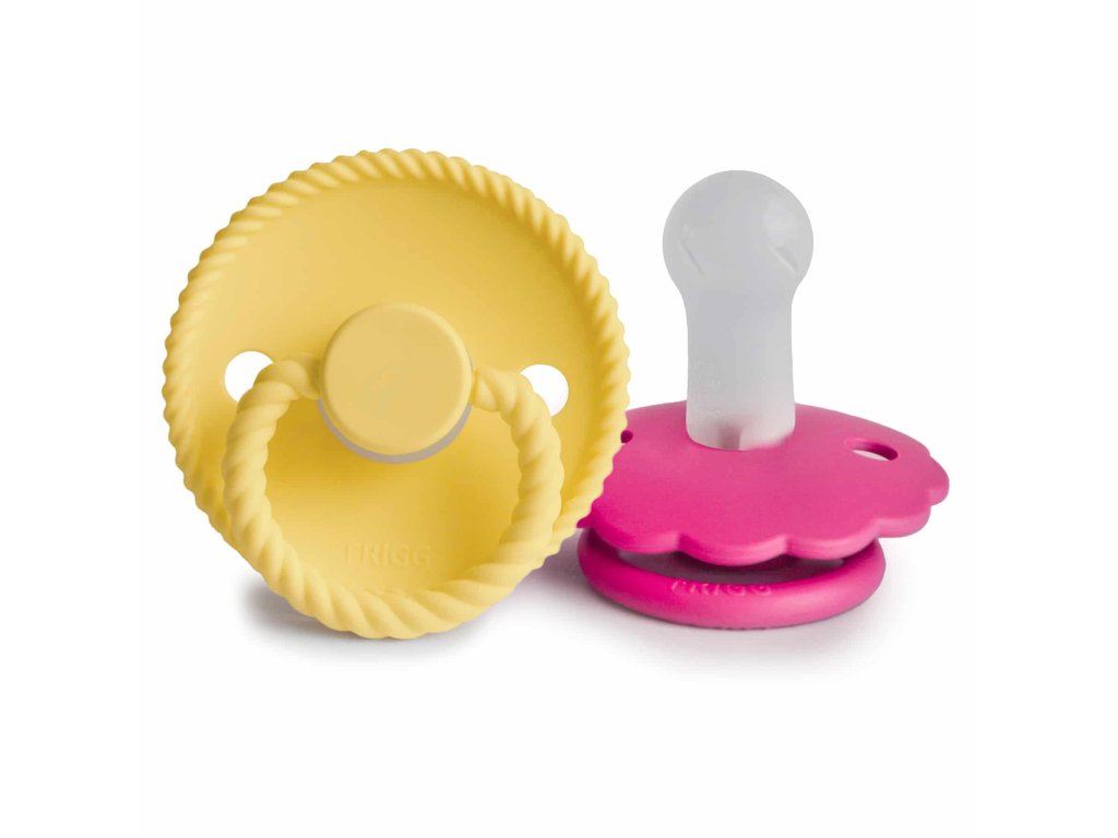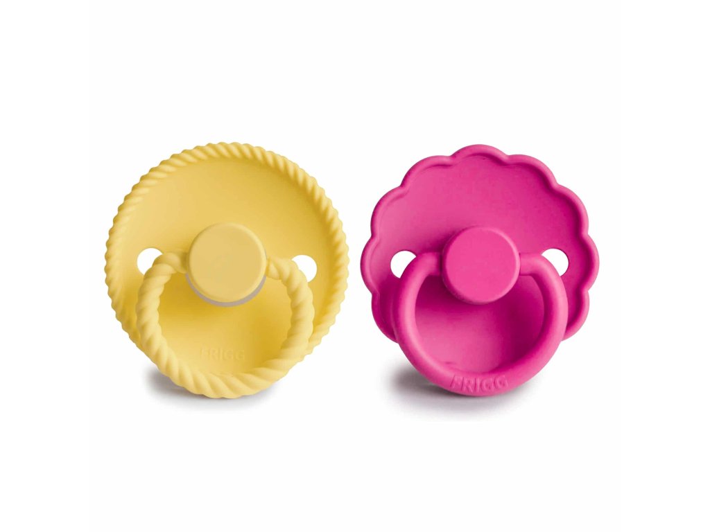 Leto. Tak radostné, a predsa tak pominuteľné. Keď zlaté slnko zapadá a magické leto končí, nemôžeme si pomôcť, ale cítime trochu smútok, keď prchavé letné chvíle zostanú už len vzácnymi spomienkami. Tieto spomienky nám pripomínajú, aby sme „objali každý okamih“, ktorý sa udeje pod teplými letnými lúčmi. FRIGG je pripravená s limitovanou letnou kolekciou ako pocta radostnému, no pominuteľnému letu. Nezabudnite si ho užiť, kým je ešte tu. FRIGG „Sunflower“ je inšpirovaná klasickou žltou slnečnicou s veľkým kvetom podobným sedmokráske a hnedým stredom. Slnečnici sa darí na plnom slnku a vyžaduje dlhé, teplé letá, aby dobre kvitla. Je známa tým, že je šťastný, pozitívny kvet, ktorý šíri radosť. FRIGG „Fuchsia“ je inšpirovaná rovnomennou rastlinou. Fuchsia kvitne veselo a voľne na slnku celé leto. Rastlina s výraznou farbou fascinuje svojou eleganciou a počas leta zanecháva v prírode jedinečnú stopu. Okrúhly tvar odporúčajú detskí chiropraktici a pôrodnice v Dánsku. Detaily cumlíka FRIGG: