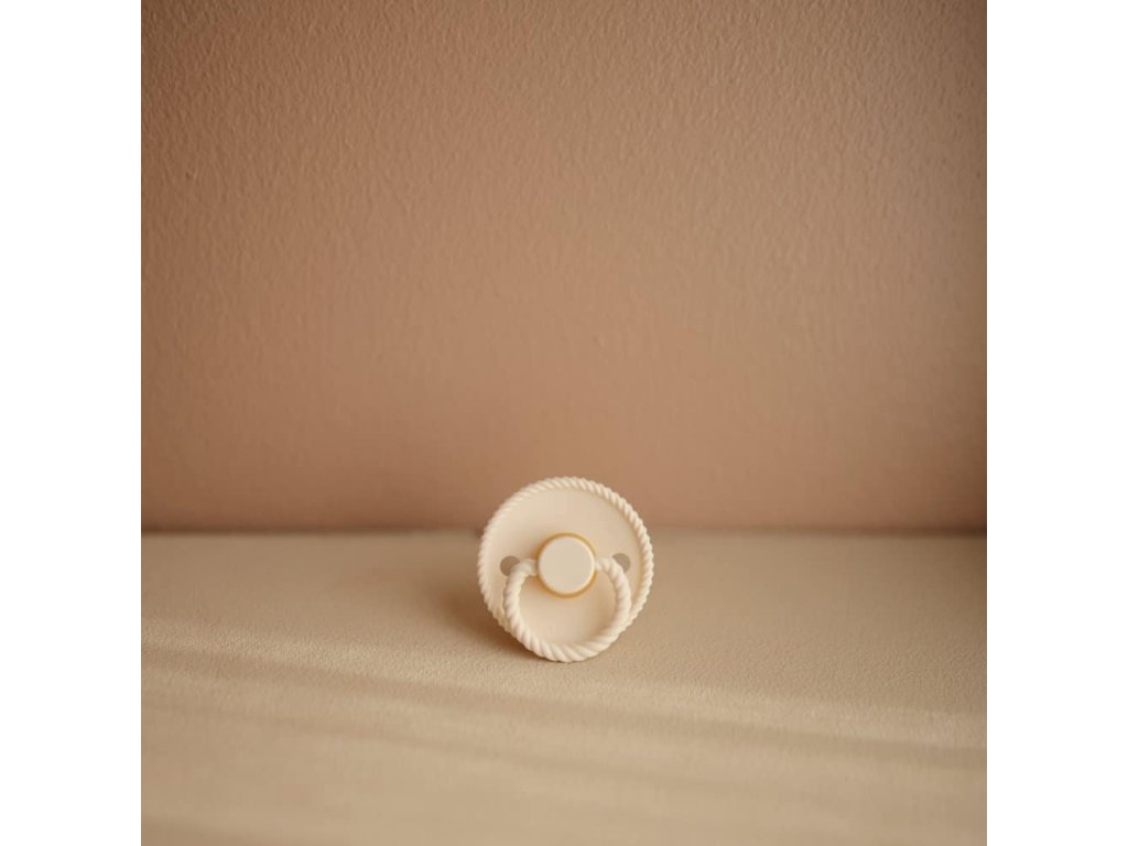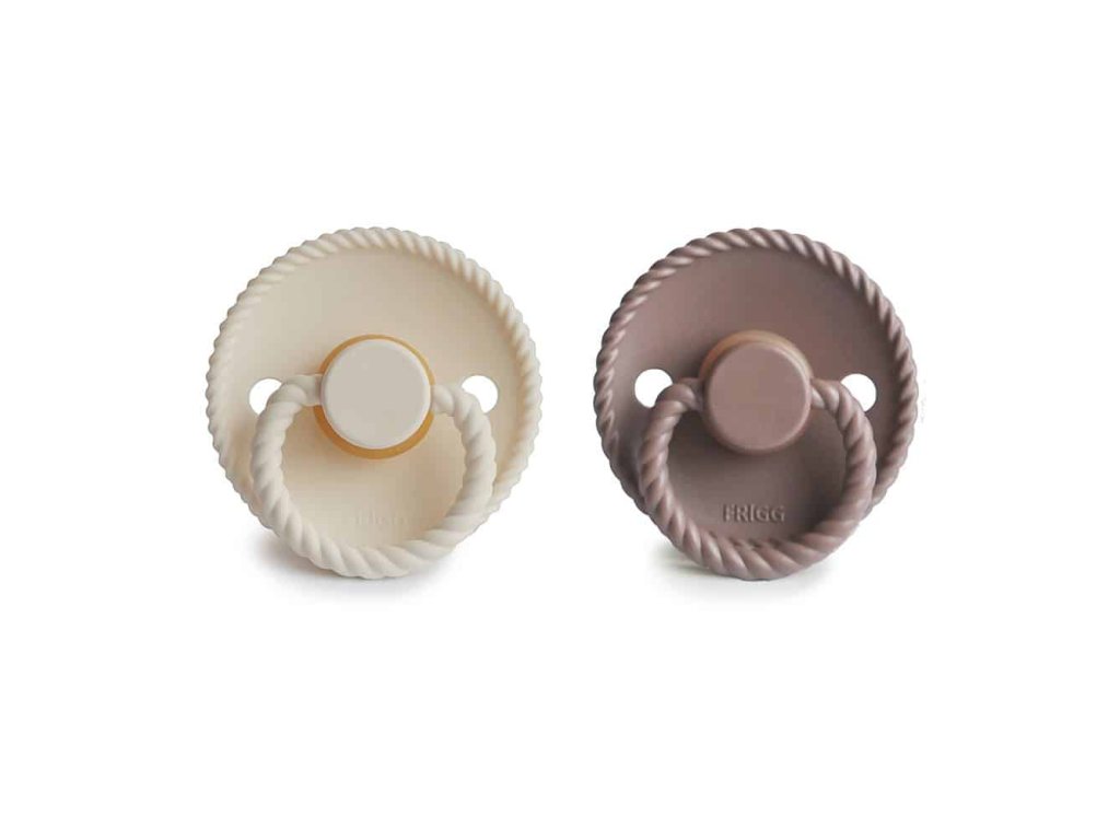 FRIGG Rope vás prinúti myslieť na dobrodružstvá zahŕňajúce sily, výšky a hĺbky. Lano je nevyhnutnou súčasťou pri turistike alebo lezení. Predstavuje bezpečnosť a stabilitu, keď sa aktivity stanú riskantnými alebo nepredvídateľnými. To ukazuje základnú inšpiráciu dizajnu cumlíka FRIGG Rope. Inšpirácia povrazom je zreteľná v dizajne cumlíka, pretože tenké povrazy obopína štít a hrubšie povrazy sú použité ako rúčka. FRIGG Rope je pre chlapcov aj dievčatá, ktorí milujú veľké dobrodružstvo... Cumlík FRIGG Night je 100% navrhnutý a vyrobený v Dánsku ako jediná značka cumlíkov na svete. FRIGG Rope je cumlík s okrúhlym tvarom cumlíka. Okrúhly cumlík tvarom aj materiálom pripomína materinský prsník. Vysvetlením je, že keď sa dieťa chystá dojčiť, jazyk sa zroluje okolo bradavky a vytvorí podtlak, ktorý spôsobí tok mlieka. Keď dieťa saje okrúhly cumlík, gúľa okolo neho jazyk rovnako. Okrúhly tvar odporúčajú detskí chiropraktici a pôrodnice v Dánsku. Detaily cumlíka FRIGG