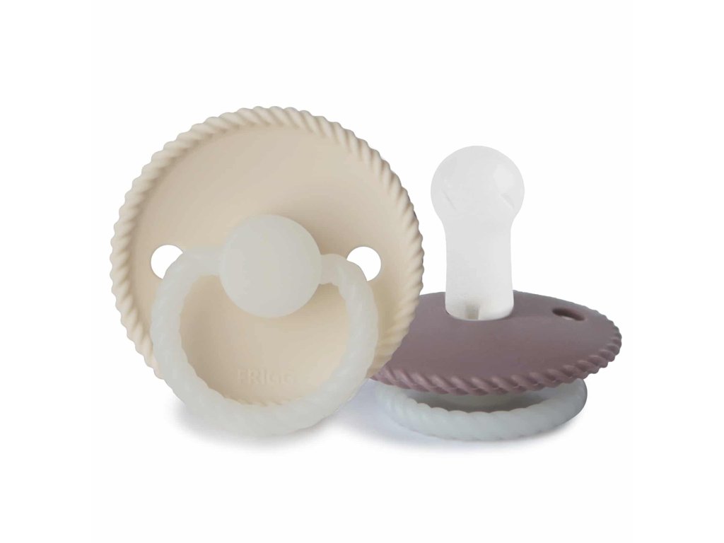 Dvojbalenie silikónových cumlíkov, vhodných pre deti od 6 mesiacov, svietiacich v tme, so vzorom lana.