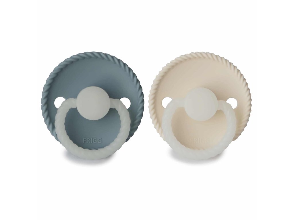 Dvojbalenie silikónových cumlíkov, vhodných pre deti od 6 mesiacov, svietiacich v tme, so vzorom lana.