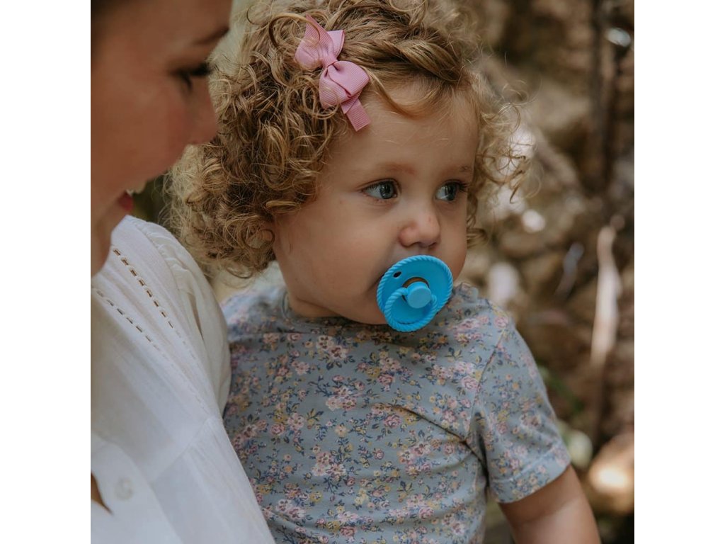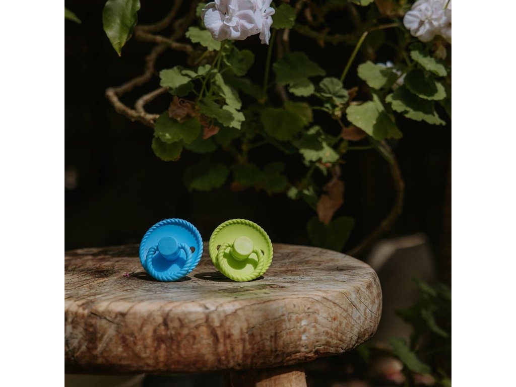 Leto. Tak radostné, a predsa tak pominuteľné. Keď zlaté slnko zapadá a magické leto končí, nemôžeme si pomôcť, ale cítime trochu smútok, keď prchavé letné chvíle zostanú už len vzácnymi spomienkami. Tieto spomienky nám pripomínajú, aby sme „objali každý okamih“, ktorý sa udeje pod teplými letnými lúčmi. FRIGG je pripravená s limitovanou letnou kolekciou ako pocta radostnému, no pominuteľnému letu. Nezabudnite si ho užiť, kým je ešte tu. FRIGG „Waterfall“ je inšpirovaný očarujúcou krásou vodopádov. Podmanivé vodopády sú elegantné a silné zároveň, a keď si razia cestu lesmi, vytvárajú úchvatné scény, ktoré nás nechajú ohromiť. Vizuálne potešenie a upokojujúce zvuky vodopádov nám umožňujú spojiť sa s prírodou na hlbšej úrovni. FRIGG „Rain Forest“ je inšpirovaný domovom viac ako polovice svetových rastlinných a živočíšnych druhov. Dažďové pralesy, zelené raje, prekypujú životom. Od týčiacich sa stromov, ktoré siahajú do neba, až po žiarivé orchidey, ktoré dodávajú farebný nádych. Úchvatné zelené dažďové pralesy sú skutočným magickým zázrakom. Okrúhly tvar odporúčajú detskí chiropraktici a pôrodnice v Dánsku. Detaily cumlíka FRIGG: