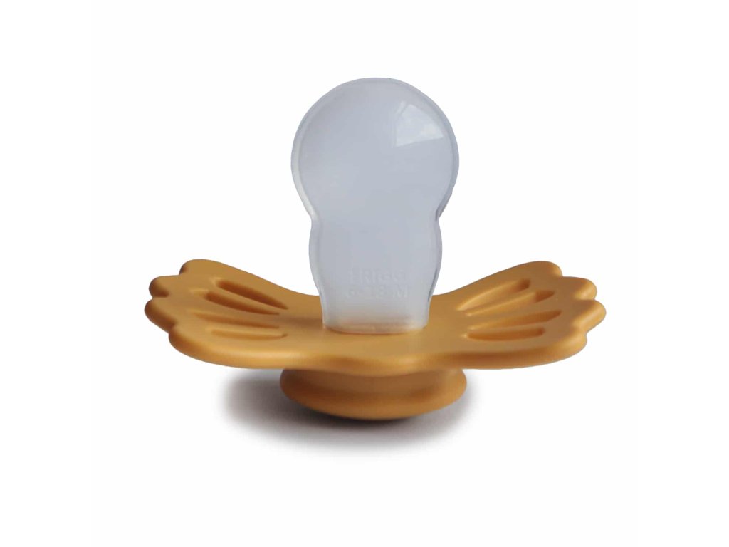 FRIGG Lucky sú symetrické cumlíky s mierne splošteným cumlíkom v tvare slzy. Symetrické cumlíky vždy správne sedia v ústach dieťaťa, bez ohľadu na to, či sú otočené nahor alebo dole. Cumlíky sú navrhnuté s plochejším krkom, aby sa znížil tlak na podnebie, ďasná a tiež znížilo riziko krivých zubov a krivého zhryzu. Ortodontický dizajn je ideálny pre podporu správneho vývoja detských zubov, čeľuste a podnebia. Každý cumlík je strojovo testovaný na závadnosť, aby sa k našim najdôležitejším zákazníkom dostal vždy perfektný produkt. FRIGG Lucky je inšpirovaný štvorlístkom. Štít má zvlnené okraje, ktoré sú v tvare listov štvorlístka a tieto listy fungujú ako vzduchové otvory. Okrúhly stred zvýrazňuje eleganciu cumlíkov. Štvorlístok je všeobecne uznávaným symbolom šťastia kvôli svojej vzácnosti. FRIGG Lucky sú vyrobené tak, aby poskytovali deťom upokojujúce pocity a prinášali im šťastie. Tieto cumlíky sú kúzlom pre šťastie, ktoré rozjasní život každého dieťaťa. Nový Click-lock™ systém odlišuje cumlík FRIGG od akéhokoľvek iného cumlíku na trhu. Vďaka novému 4-krokovému procesu spájania jednotlivých častí cumlíka je možné cumlík zostaviť jednoduchým kliknutím, bez použitia akejkoľvek sily. Vďaka tomu je cumlík ešte odolnejší ako predtým. FRIGG je 100% dizajnovaný a vyrobený v Dánsku ako jediná značka cumlíkov na svete! Každý cumlík je zároveň vyrobený na princípe zero-waste, čím sa minimalizuje odpad materiálu vďaka možnosti recyklácie. Cumlíky sú vyrábané s maximálny ohľadom na životné prostredie, a zároveň s dôrazom na uspokojenie potrieb najmenších detí. FRIGG kladie dôraz aj na bezpečnosť - cumlíky sú vyrábané bez BPA, PVC a ftalátov, každý cumlík podstupuje stretch a vacuum test pred uvedením do predaja a sú vyrábané podľa najprísnejšej normy EN1400-A2. Detaily cumlíka FRIGG Lucky