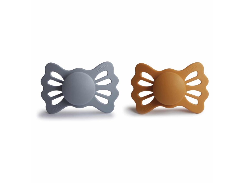 DVOJBALENIE SYMETRICKÝCH CUMLÍKOV FRIGG LUCKY GREAT GRAY/HONEY GOLD, 6-18M, SILIKÓN