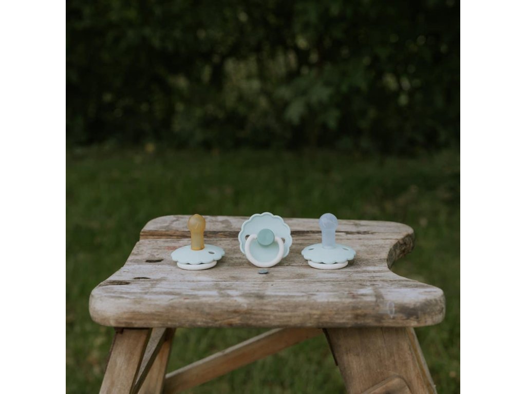 Kvet maku s jemnými, papierovými okvetnými lístkami je inšpiráciou pre túto novú farbu FRIGG; krásny a výrazný červený odtieň. Vibrujúci kvet maku je podstatou očarujúcej krásy a cumlíku FRIGG Daisy prináša jedinečné čaro.