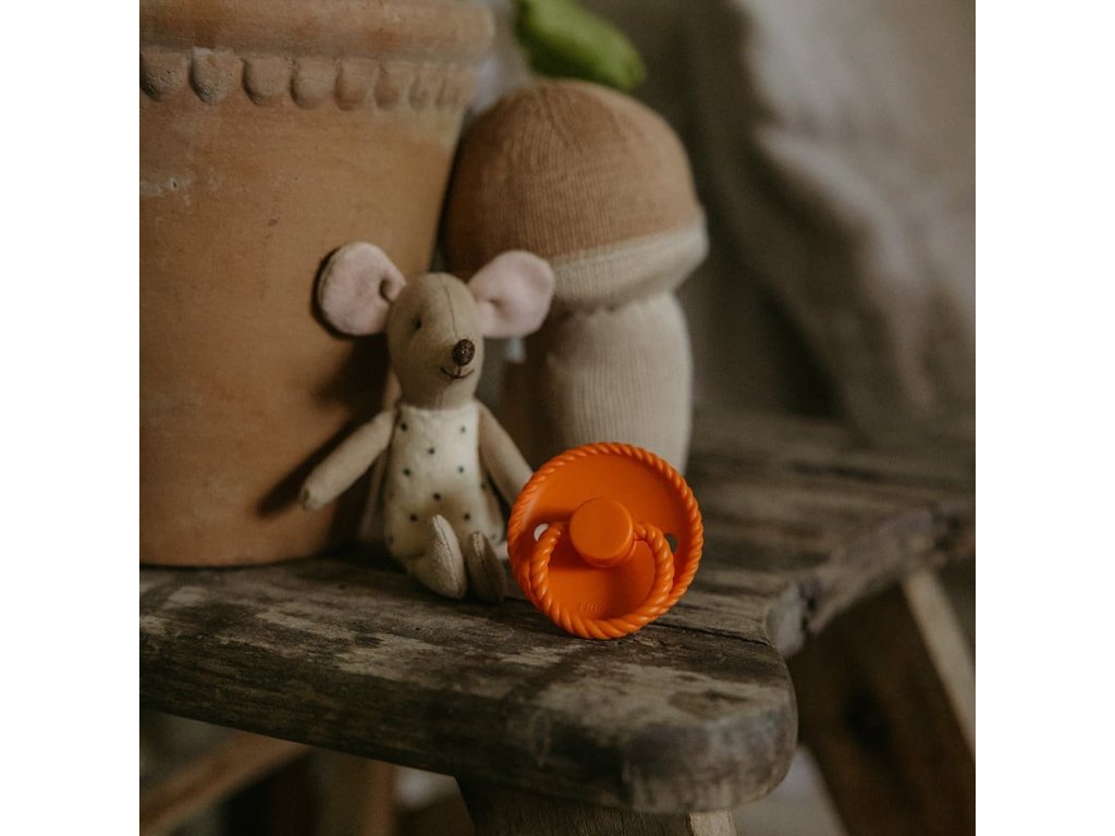 Jeseň je čarovné ročné obdobie, keď príroda maľuje svet v žiarivých odtieňoch červenej, oranžovej a hnedej. V Dánsku sa ulice pomaly zakrývajú lístím v jesenných farbách a prinášajú nám pohľad na prírodnú krásu. Toto ročné obdobie nás volá spomaliť, zababušiť sa pod mäkké deky s dobrou knihou alebo filmom a popíjať nápoje ako horúce kakao. Ako sa blíži zima, mnohí z nás hľadajú spôsoby, ako urobiť naše domovy a životy útulnými a pohodlnejšími. Zadajte pojem „hygge“, dánsky výraz bez priameho prekladu do angličtiny. Dnes sa hygge rozrástlo do komplexnej myšlienky, ktorú možno najlepšie opísať ako recept na šťastie, ktorý zahŕňa teplo, relax, pôžitkárstvo, prítomnosť a pohodlie v jednom. S novou limitovanou jesennou kolekciou FRIGG s názvom „Hygge & Happiness“ vás povzbudzujeme, aby ste do svojich domovov a životov pozvali pocit hygge a šťastia. FRIGG „javor“ Je inšpirovaný úžasným javorom, ktorý počas jesene žiari v odtieňoch oranžovej, červenej a žltej, čo je skutočný vizuálny pôžitok. FRIGG Rope je cumlík s okrúhlym tvarom cumlíka. Okrúhly cumlík tvarom aj materiálom pripomína materinský prsník. Vysvetlením je, že keď sa dieťa chystá dojčiť, jazyk sa zroluje okolo bradavky a vytvorí podtlak, ktorý spôsobí tok mlieka. Keď dieťa saje okrúhly cumlík, gúľa okolo neho jazyk rovnako. Okrúhly tvar odporúčajú detskí chiropraktici a pôrodnice v Dánsku. Detaily cumlíka FRIGG