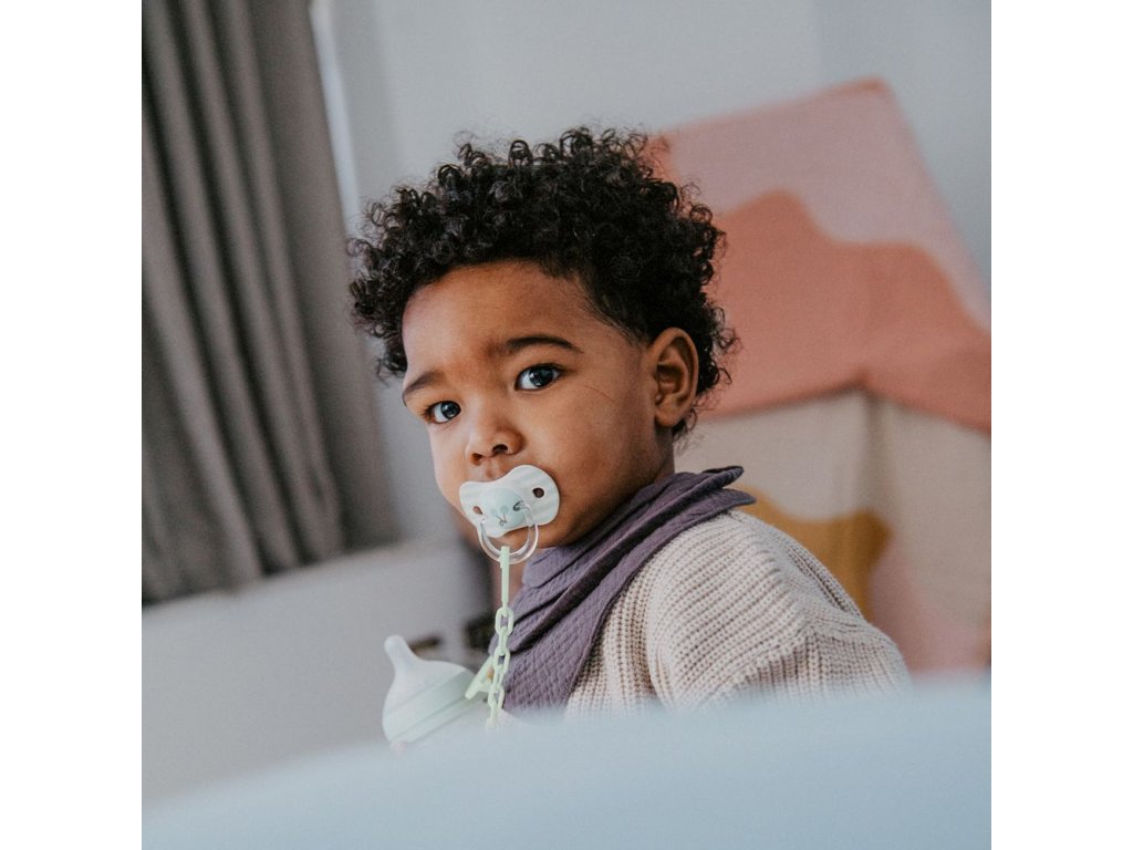 Je veľkým pomocníkom pre kľud vás i vášho dieťatka, či už pri spánku alebo na prechádzke. Je dokázané, že sanie cumlíka uvoľňuje endorfín, takzvaný hormón šťastia, ktorý prináša dieťatku príjemný ukľudňujúci pocit. Doprajte dieťatku cumlík miesto prstov či pestičky, pretože tento spôsob ukľudňovania môže veľmi porušiť budúci dentálny vývoj. Všetky cumlíky sú podporované a vyrábané v spolupráci s Asociáciou španielskych detských ortodontistov a rešpektujú prirodzený vývoj ďasien, zubov i podnebia dieťatka.