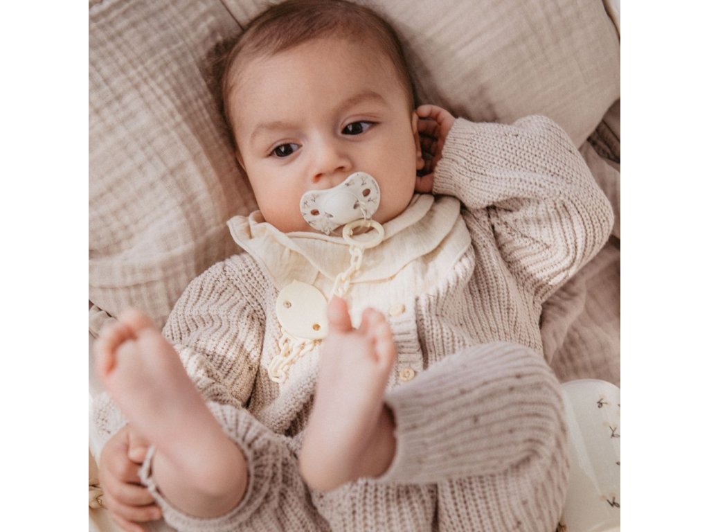 Je veľkým pomocníkom pre kľud vás i vášho dieťatka, či už pri spánku alebo na prechádzke. Je dokázané, že sanie cumlíka uvoľňuje endorfín, takzvaný hormón šťastia, ktorý prináša dieťatku príjemný ukľudňujúci pocit. Doprajte dieťatku cumlík miesto prstov či pestičky, pretože tento spôsob ukľudňovania môže veľmi porušiť budúci dentálny vývoj. Všetky cumlíky sú podporované a vyrábané v spolupráci s Asociáciou španielskych detských ortodontistov a rešpektujú prirodzený vývoj ďasien, zubov i podnebia dieťatka.